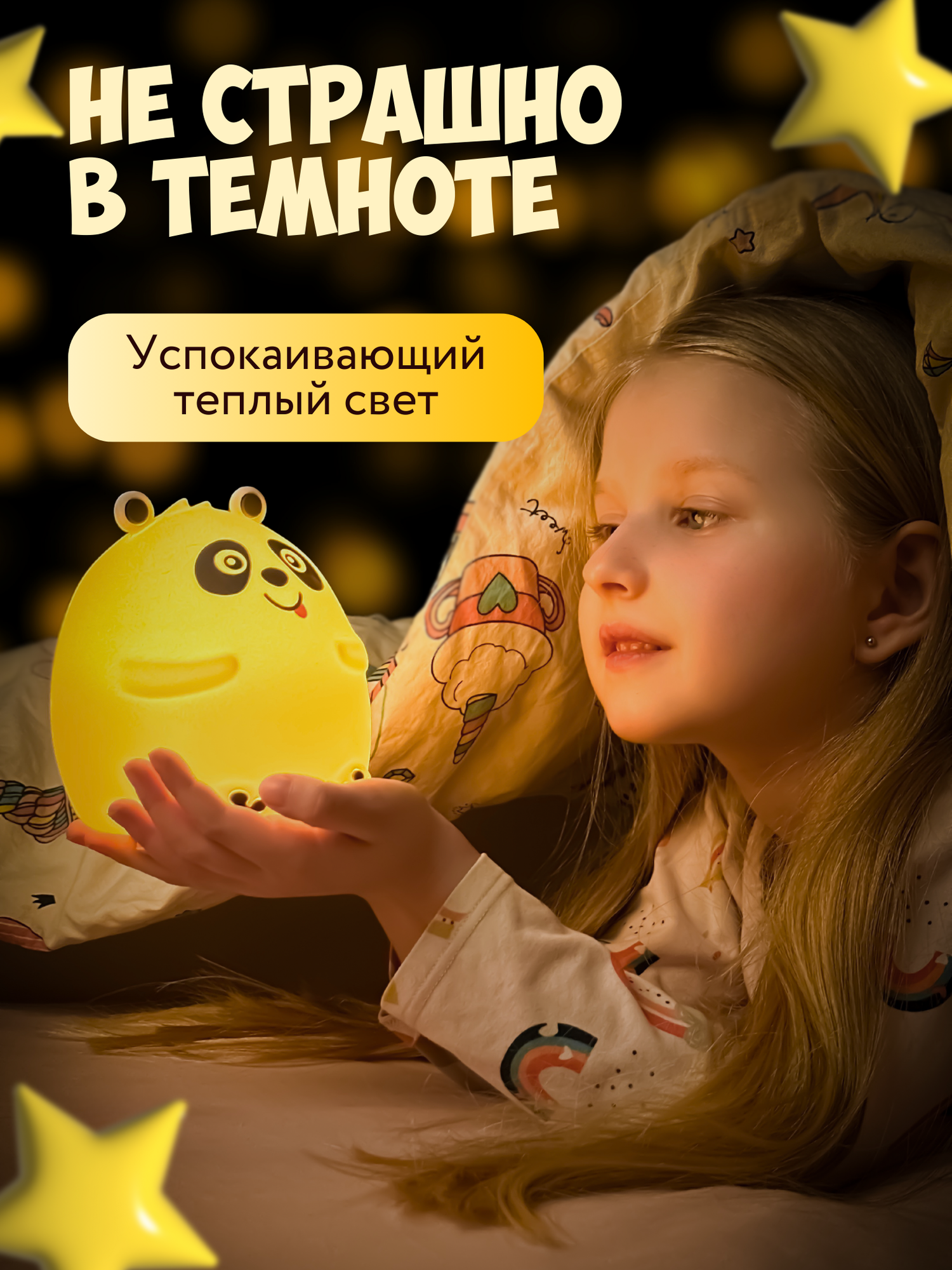 Ночник силиконовый WH-A11 "Панда", USB, аккум. 1200мАч, 3000К+RGB (7 цветов) Включай интересное: