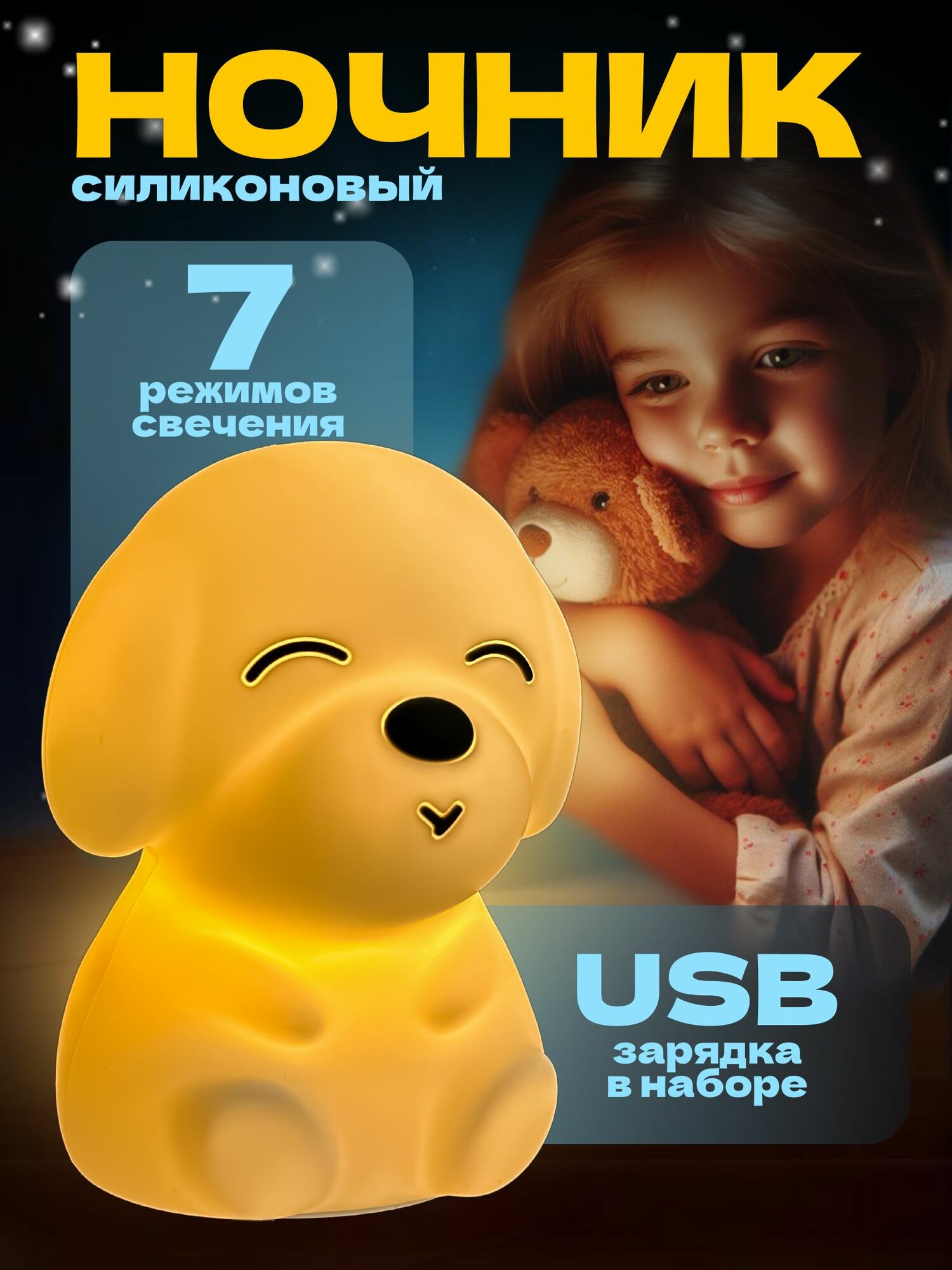 Ночник силиконовый WH-A06 "Собачка", USB, аккум. 1200мАч, 3000К+RGB (7 цветов) Включай интересное: