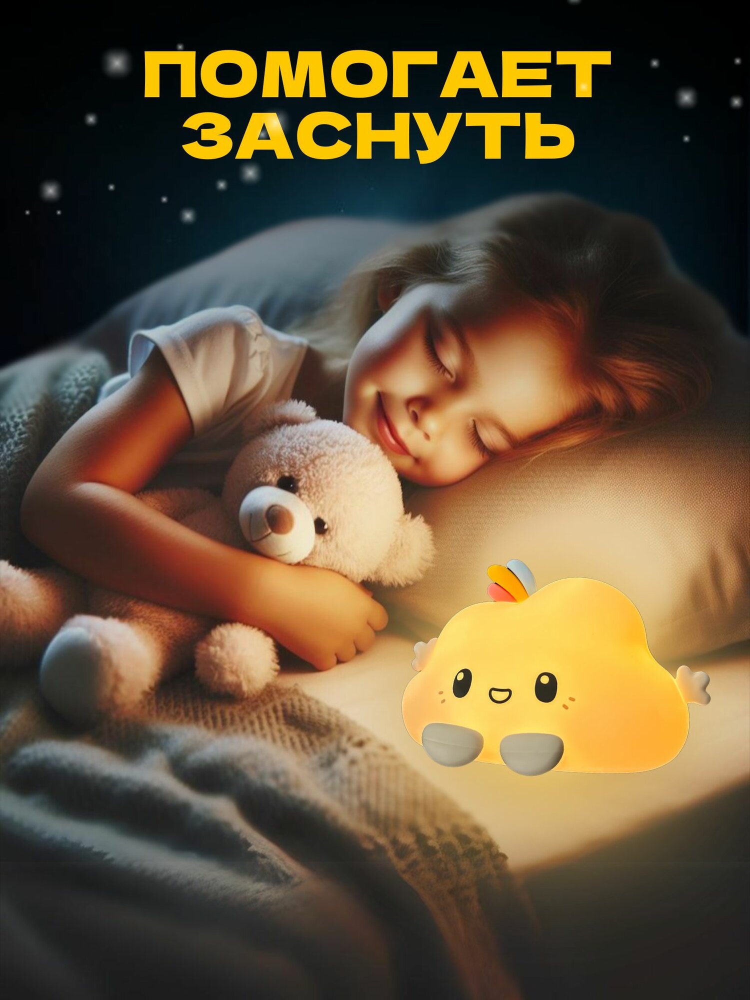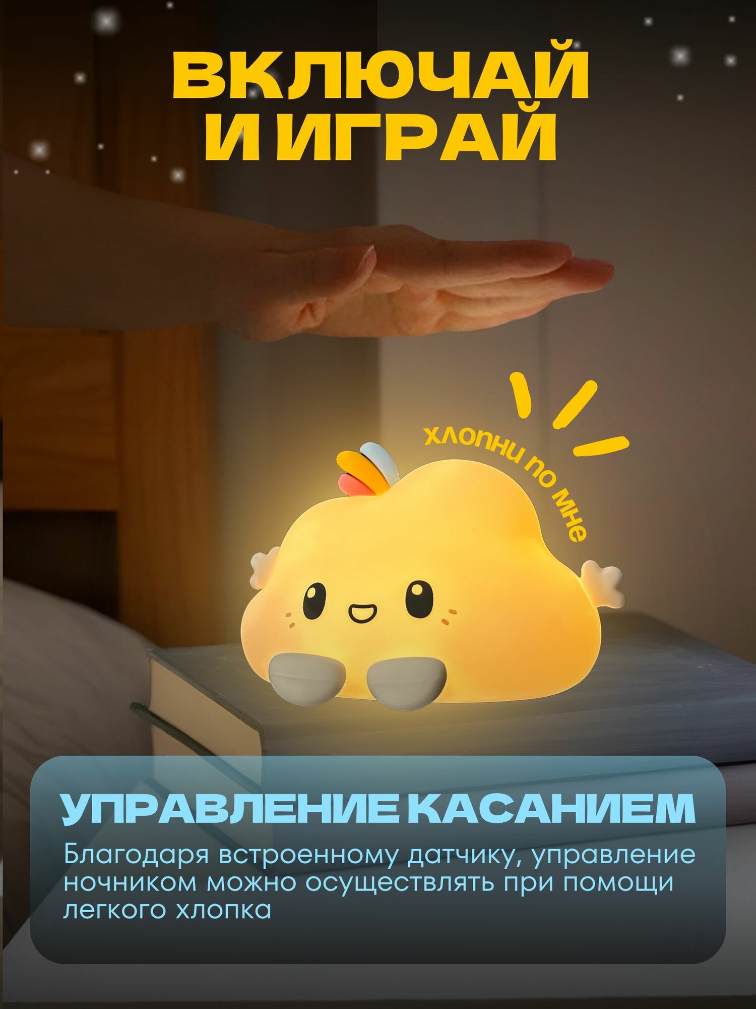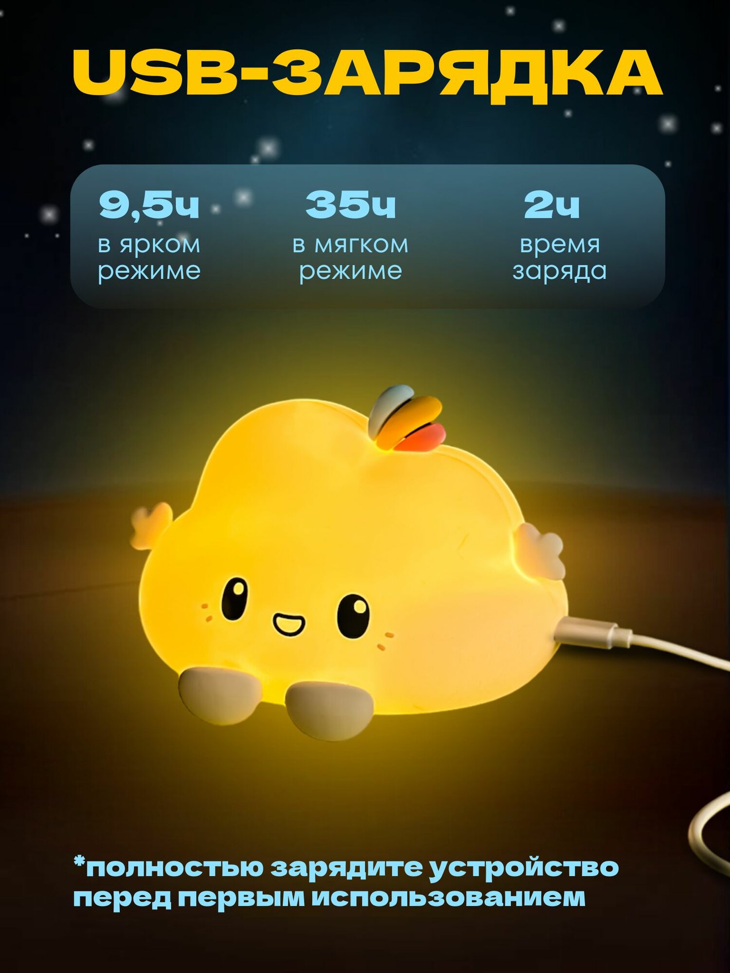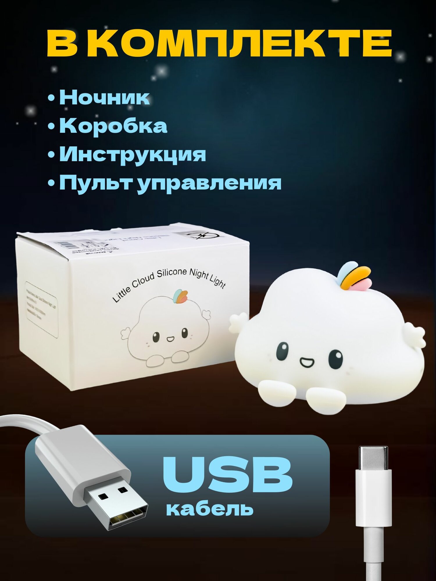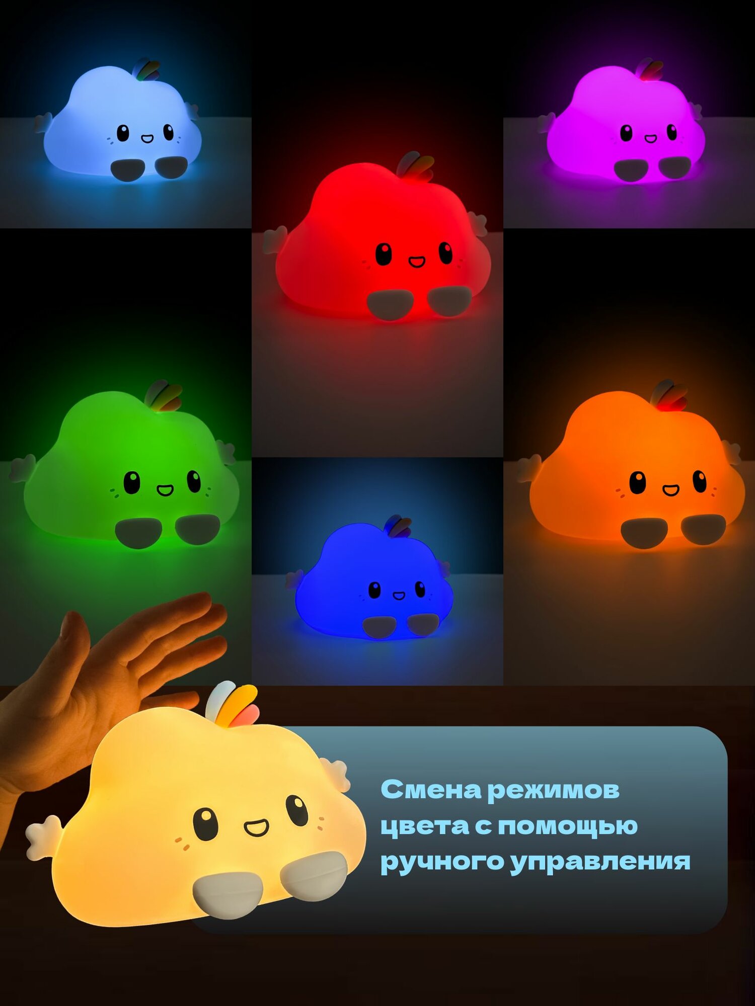 Ночник силиконовый WH-12RC "Облачко", USB, аккум. 1200мАч, 3000К+RGB (7 цветов), с ДУ Включай интересное: