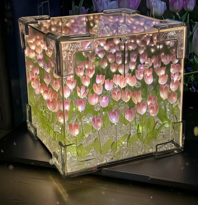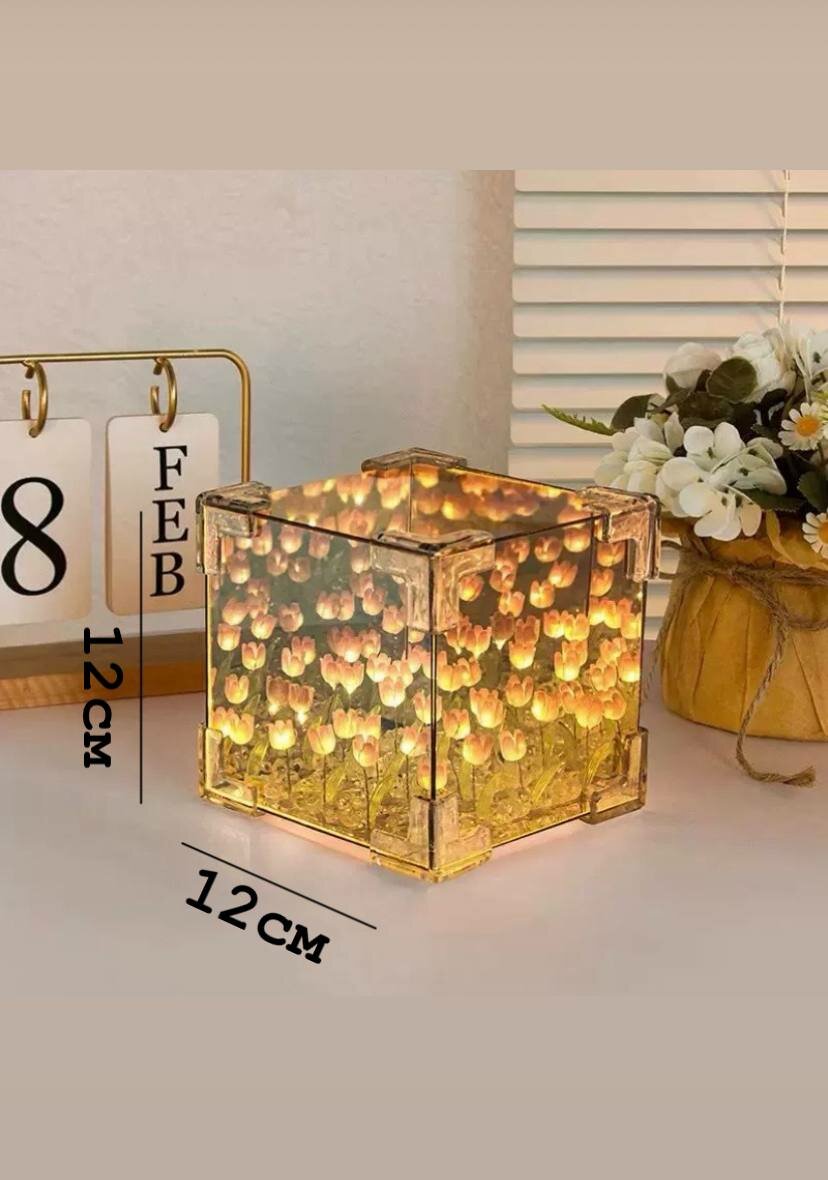 Ночник "Зеркальный куб с тюльпанами", пластик, теплый свет, питание от батареек интересное: