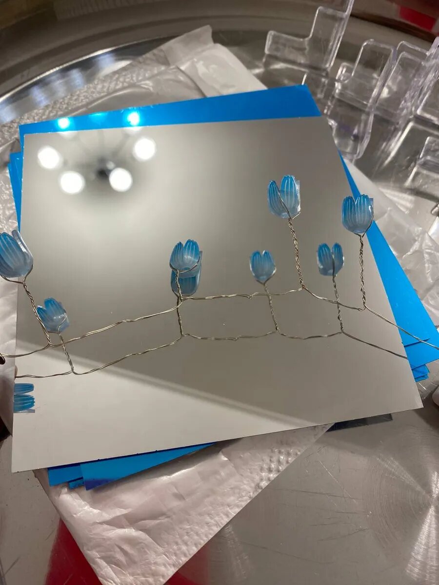 Ночник "Зеркальный куб с тюльпанами", пластик, теплый свет, питание от батареек
