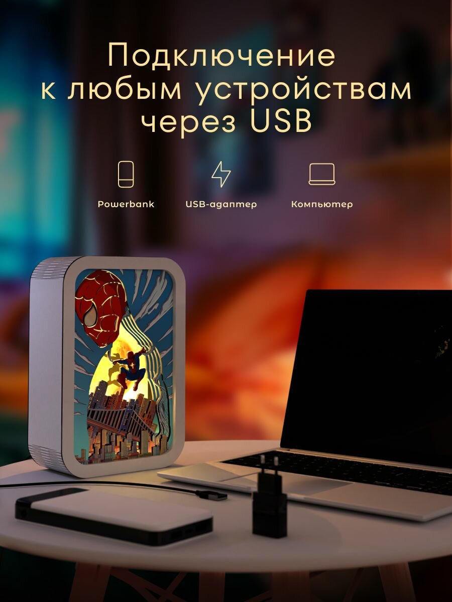 Сохранить3D ночник картина Человек Паук / детский настольный 3Д светильник от VozWooden интересное: