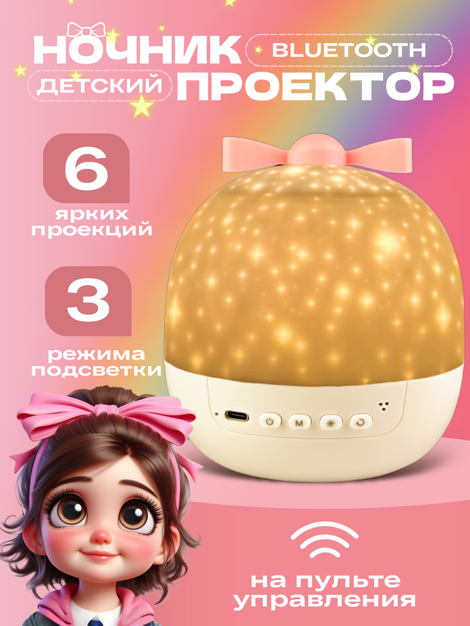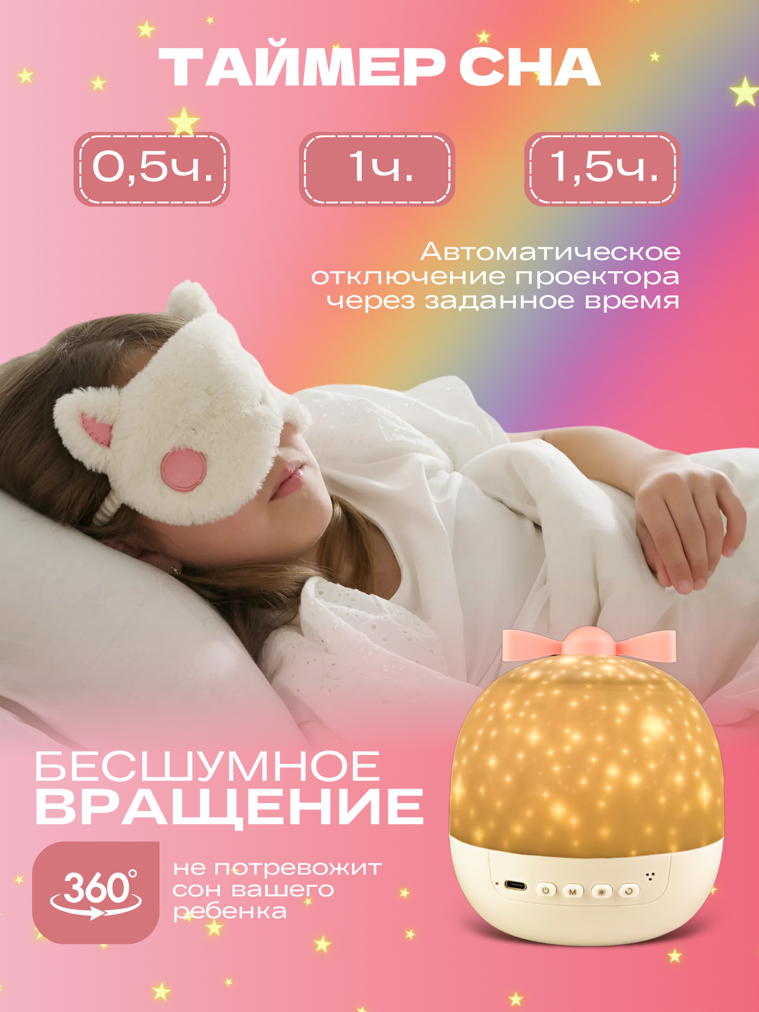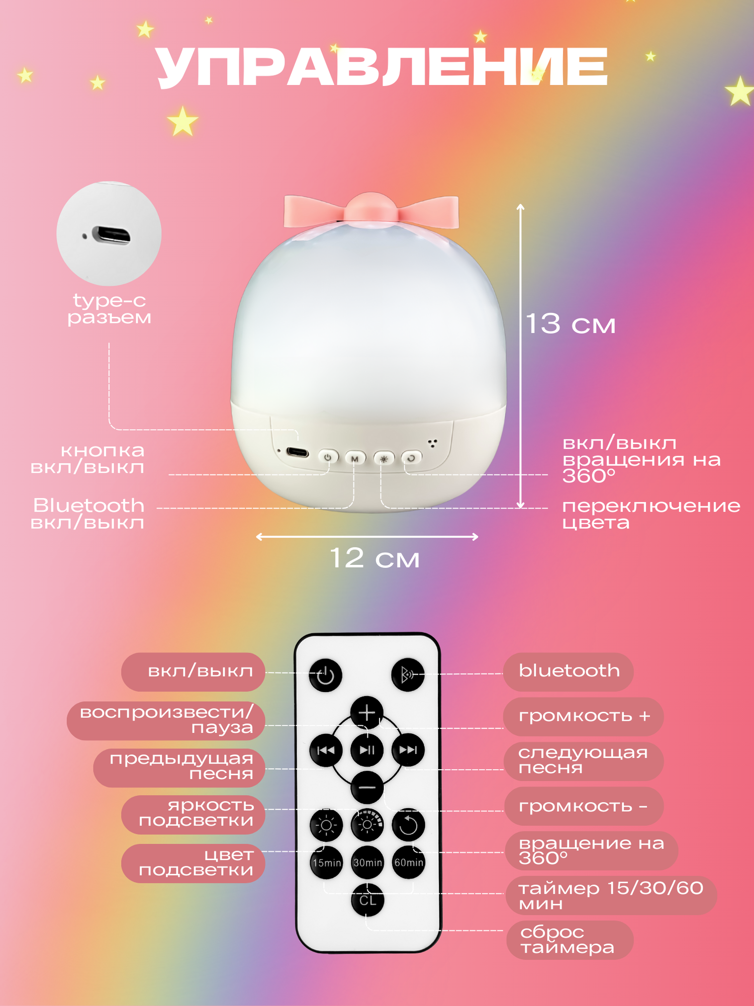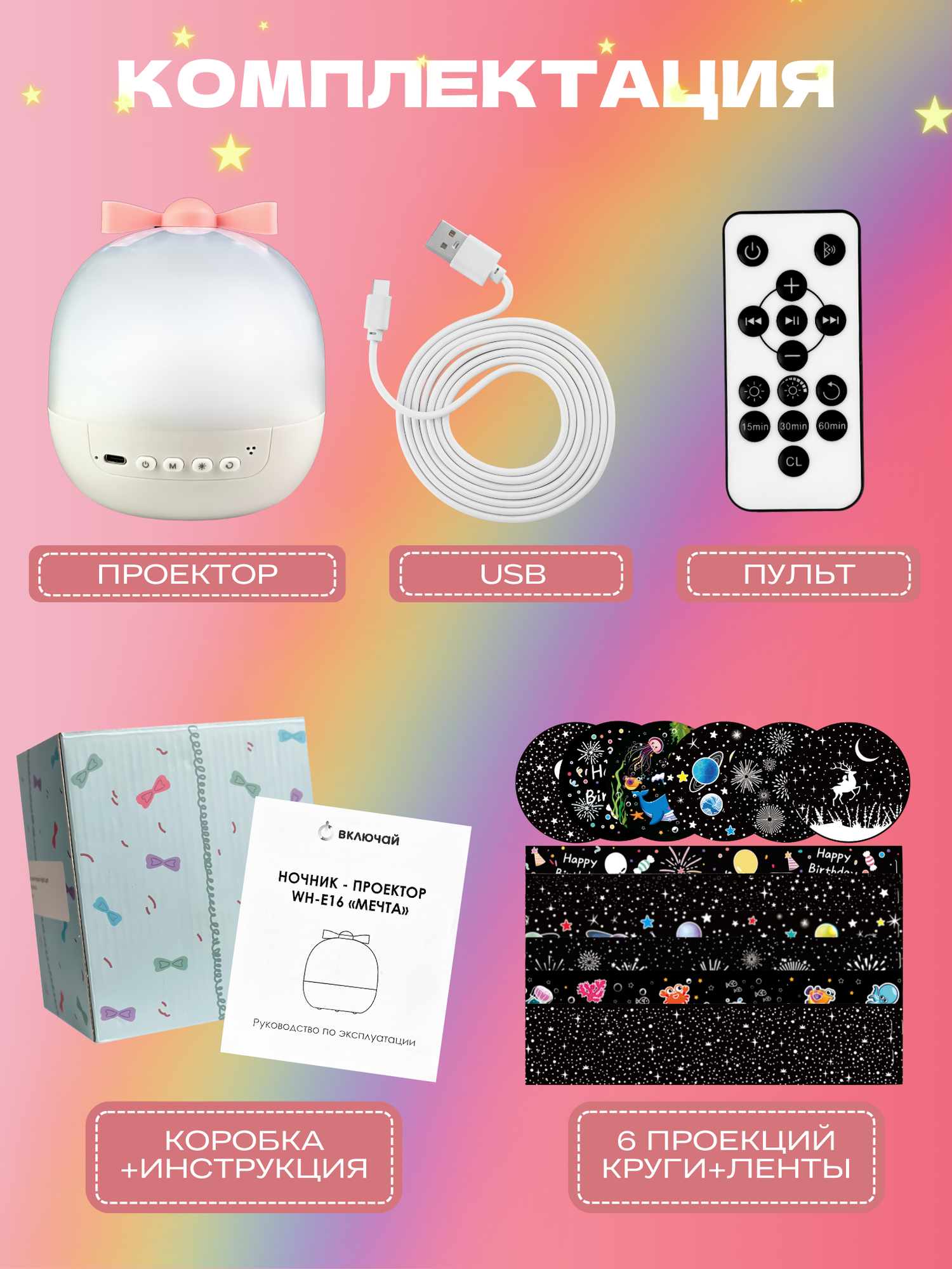 Ночник - проектор WH-E16 "Мечта" с Bluetooth, 6 сменных проекций, 3 цветовых режима + смешанный режим, с ДУ "Включай" интересное: