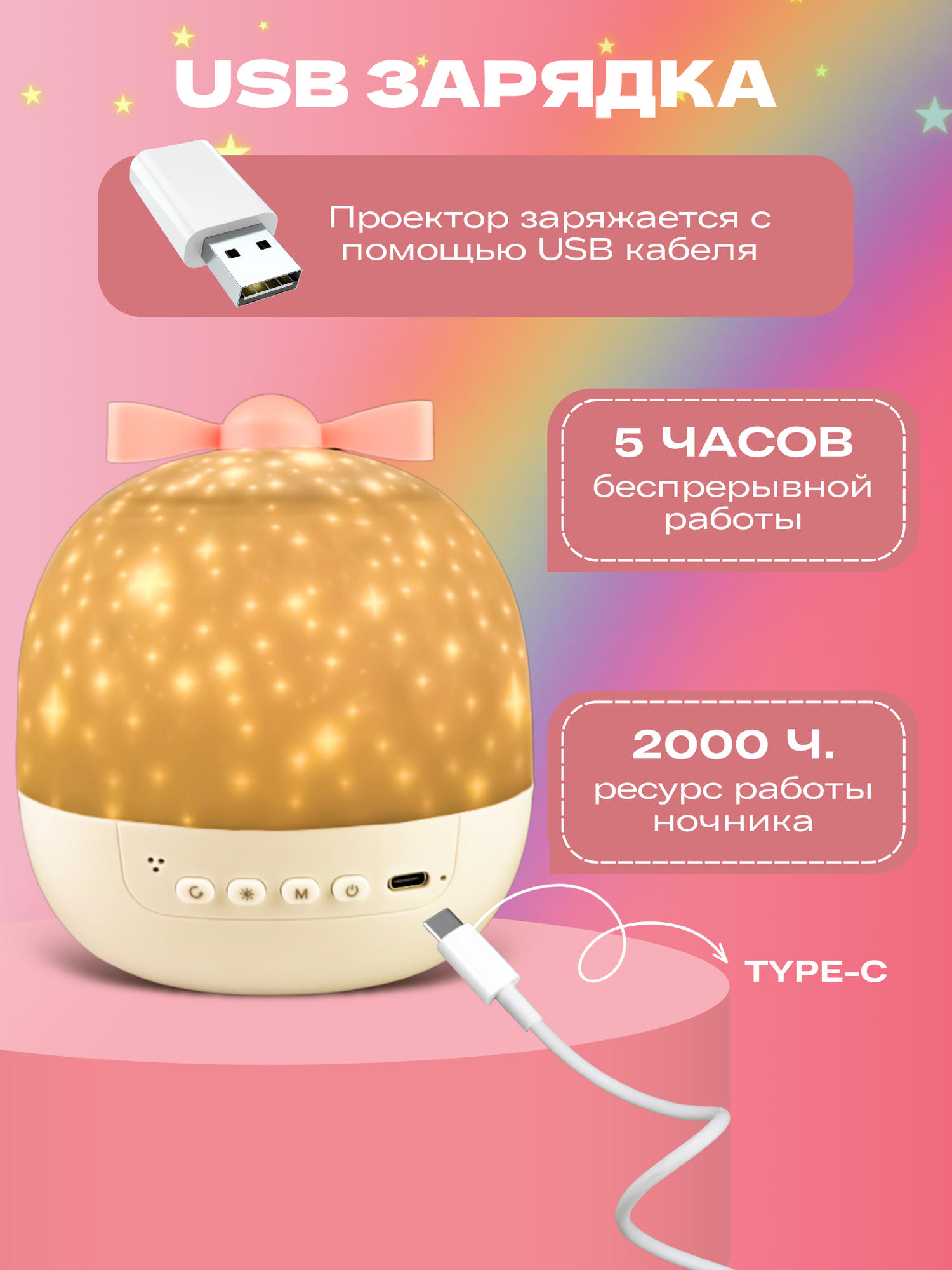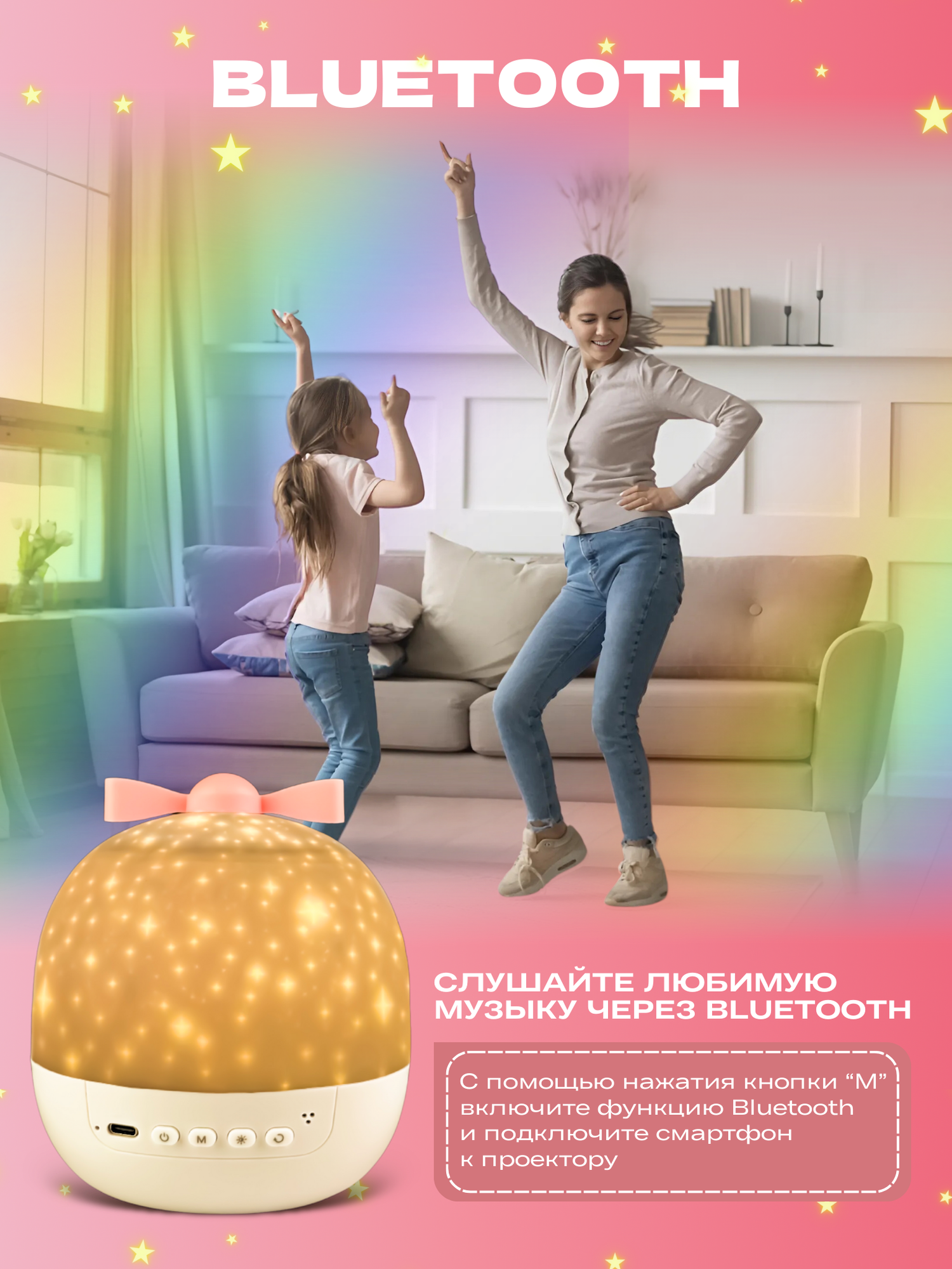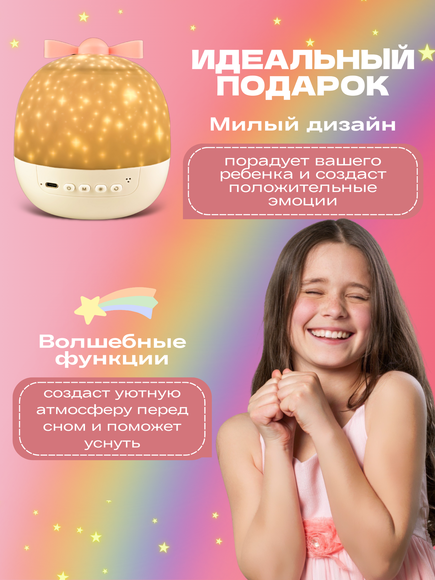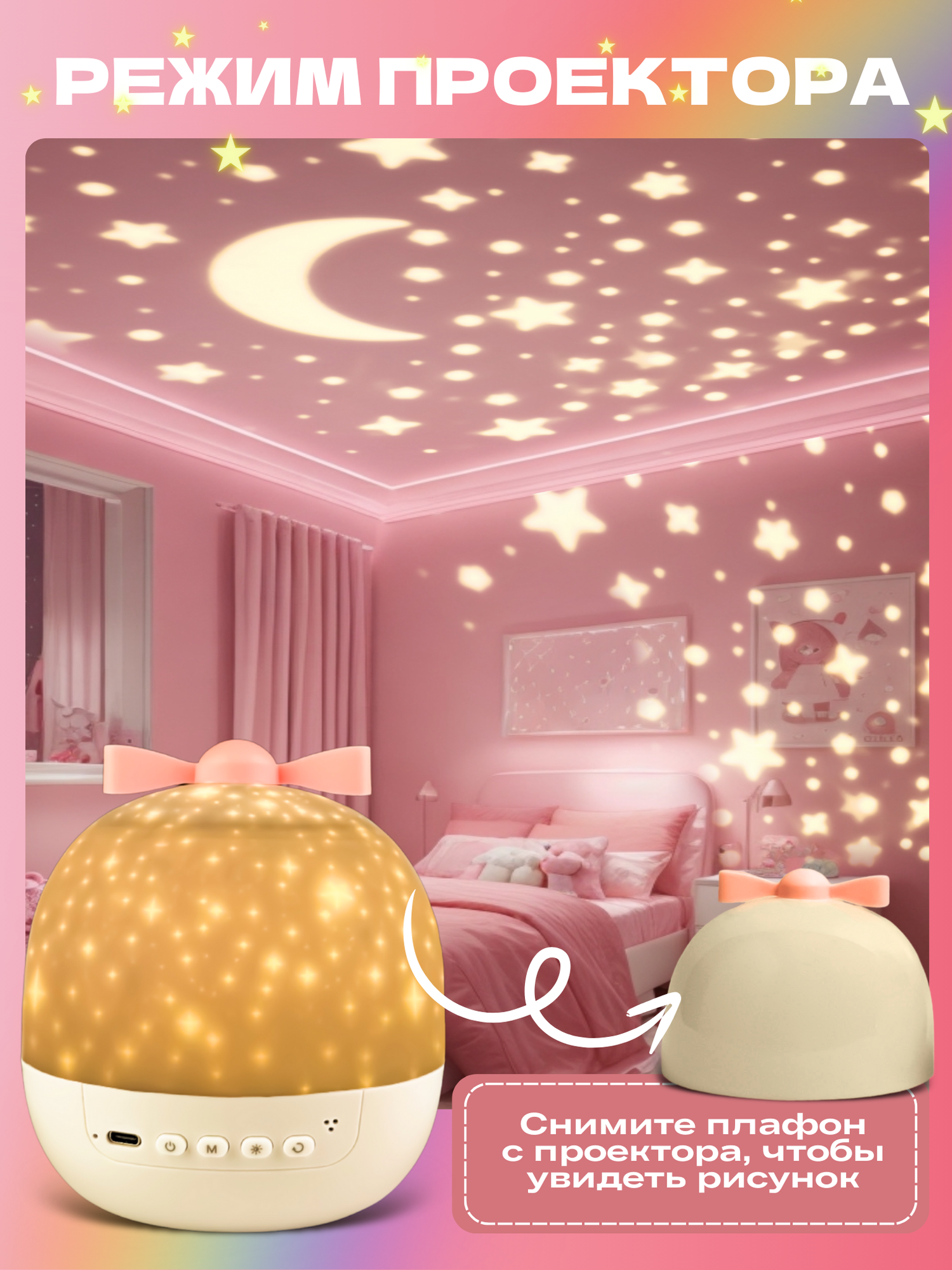 Ночник - проектор WH-E16 "Мечта" с Bluetooth, 6 сменных проекций, 3 цветовых режима + смешанный режим, с ДУ "Включай" интересное: