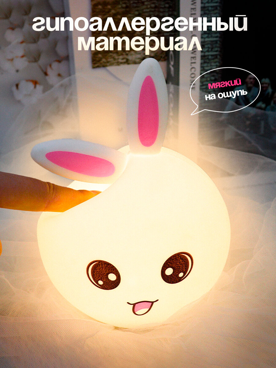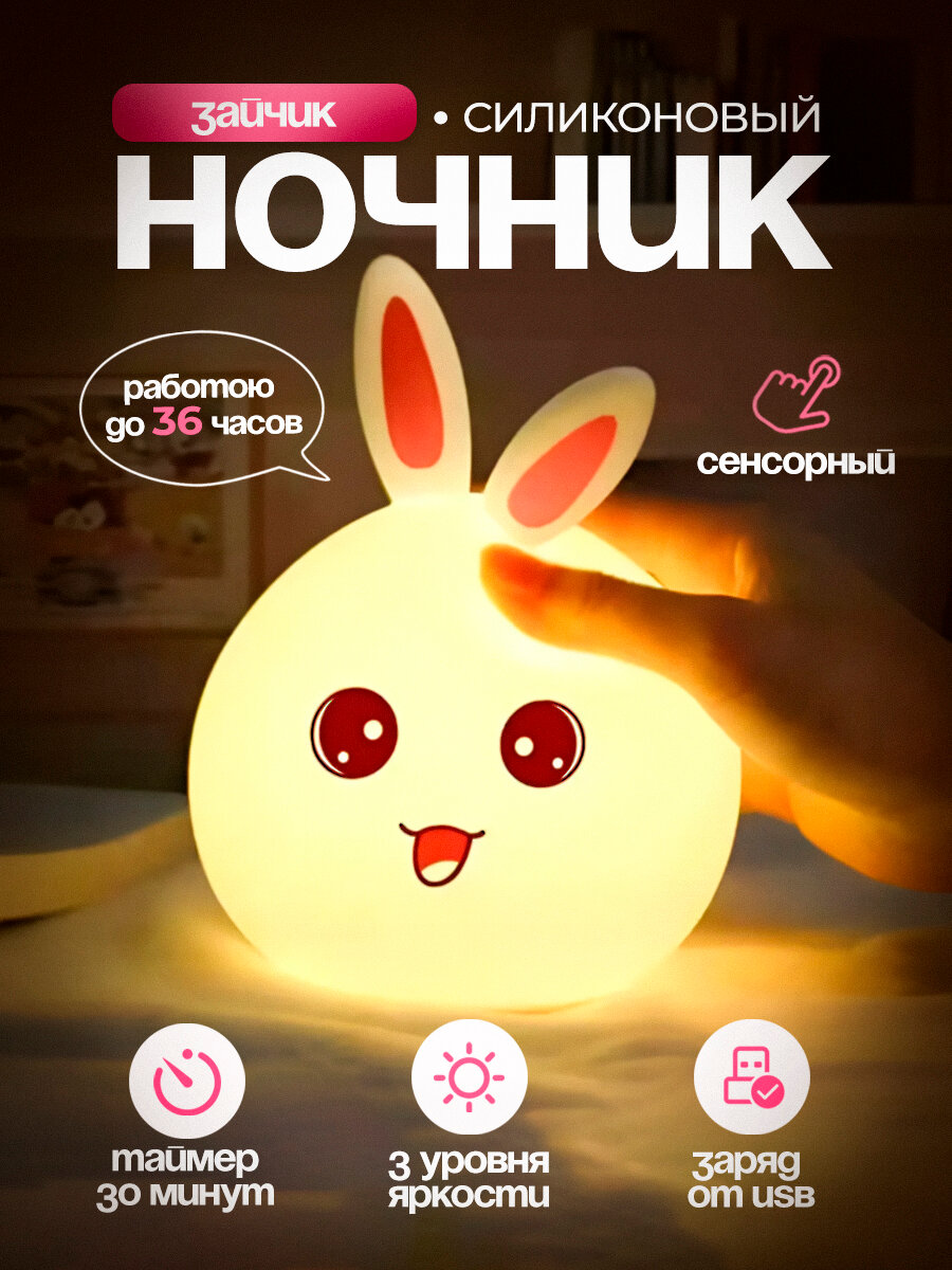 СохранитьДетский ночник с таймером силиконовый Зайчик, беспроводной светильник для малышей Кролик интересное: