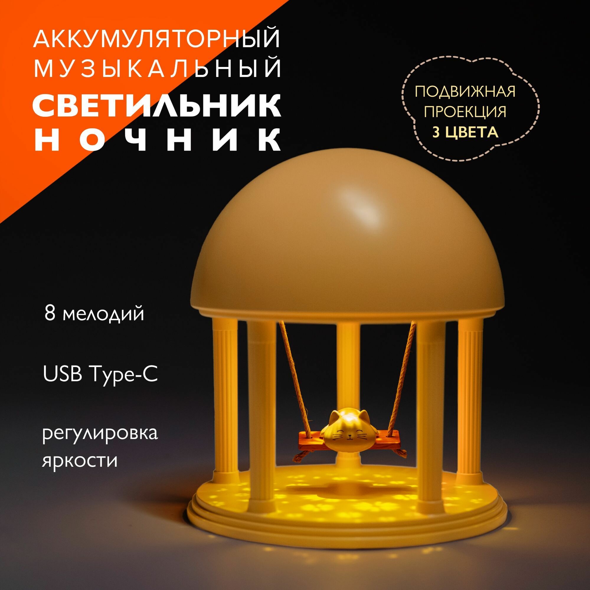 Светильник ночник / декоративный светильник музыкальный Jazzway Котик JS9-CAT-ye интересное:
