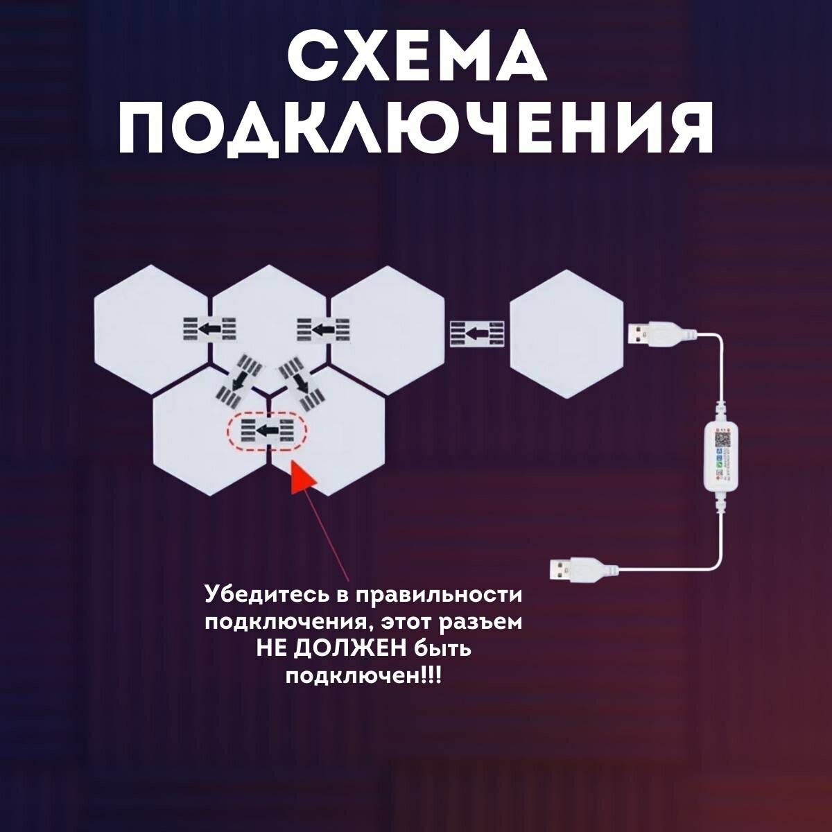 Светильник настенный модульный (6 прямых модулей + 1 угловой), умная RGB панель, неоновые лампы со светомузыкой