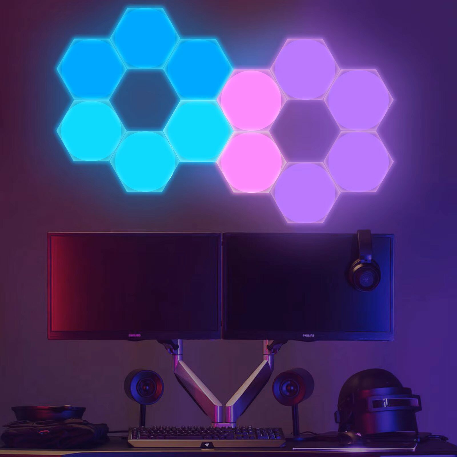 Купить Светильник настенный модульный "Шестиугольники/Соты Большие" (набор 6 штук). Светодиодная панель DIY. Умные RGB лампы