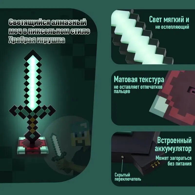 СохранитьСветильник Майнкрафт - Алмазный меч, ночник детский из игры Minecraft, 7 цветов интересное:
