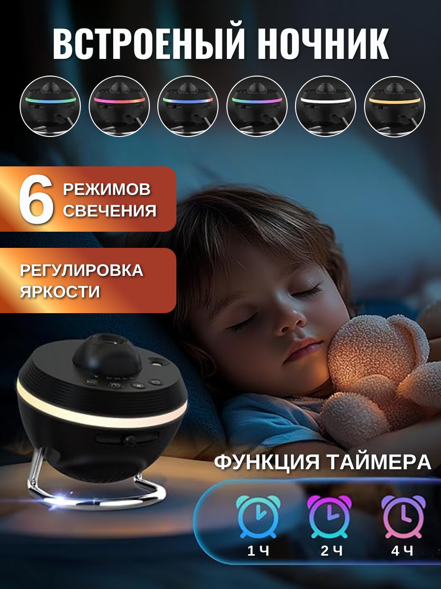 Ночник-проектор "Звездное небо", с метеоритным дождём, таймер, 13 слайдов в комплекте, RGBW интересное: