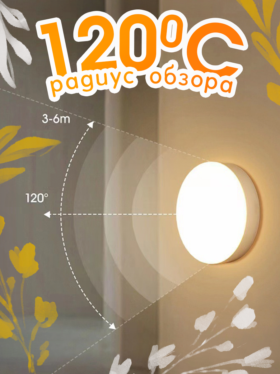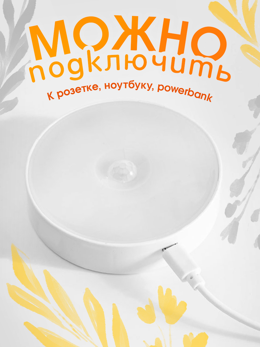 Светильник с датчиком движения в шкаф, умный настенный фонарь на аккумуляторе. тёплый свет. интересное: