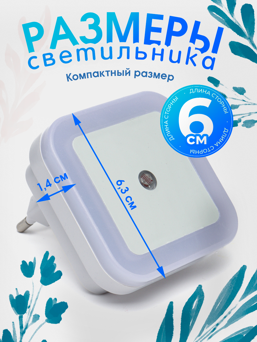 Светильник с датчиком освещения, в розетку, белый интересное: