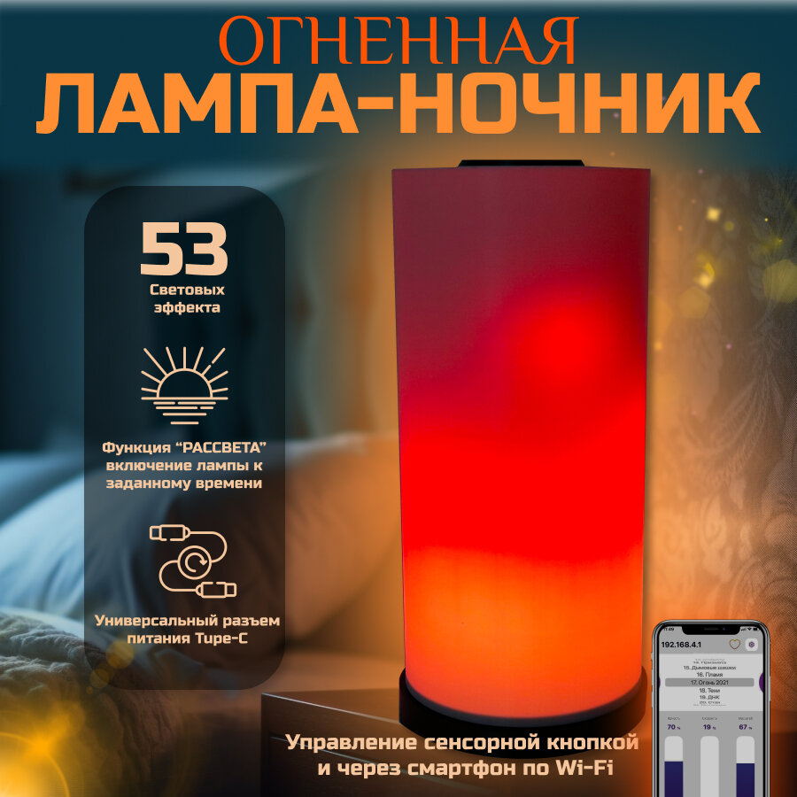 Умный Wi-Fi светильник, ночник с эффектом огня Gyver Lamp (плафон 3d печать) интересное: