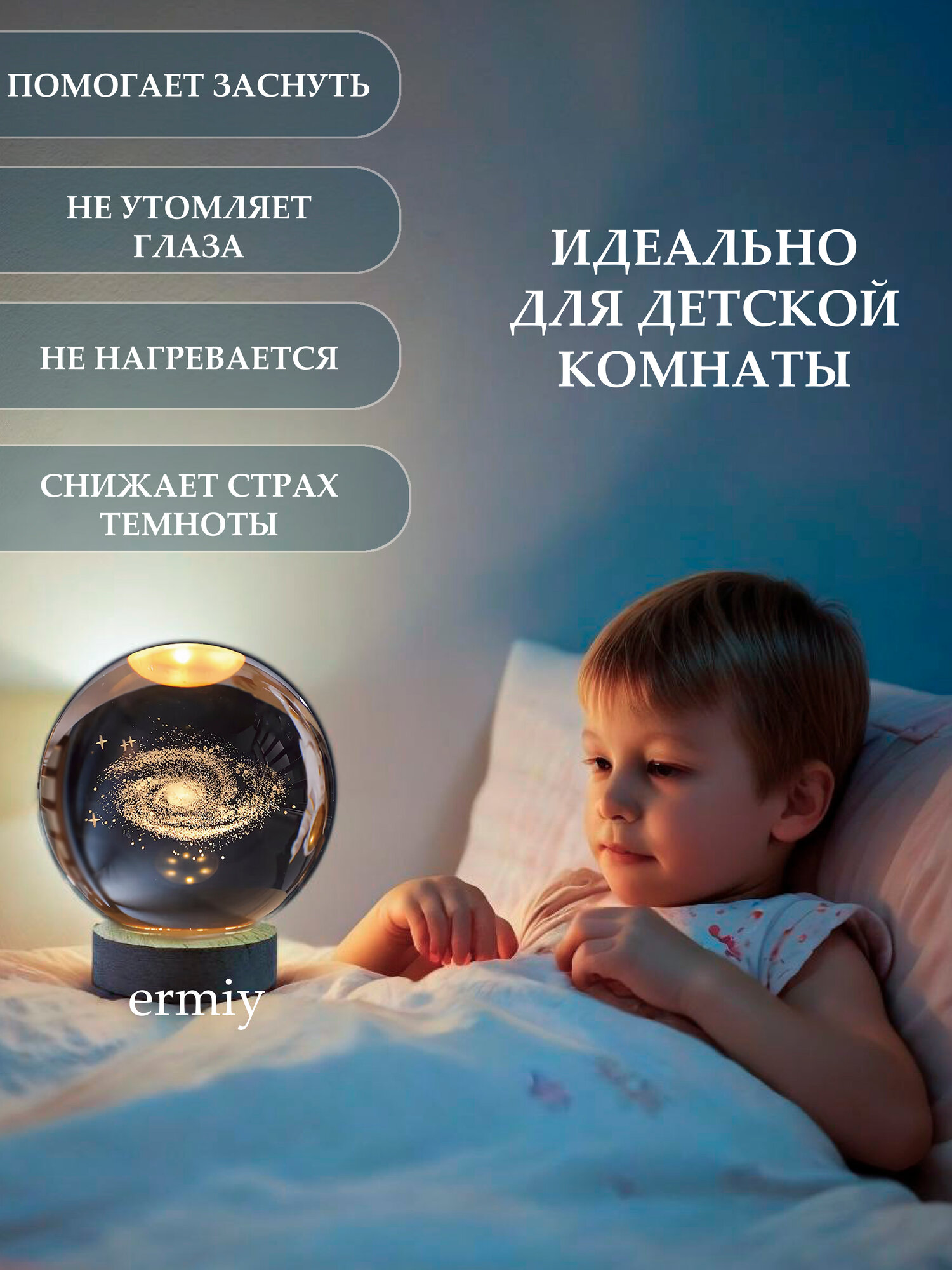 Ночник Ermiy "Млечный Путь", стеклянный, 3Д, в виде шара, тёплый свет интересное: