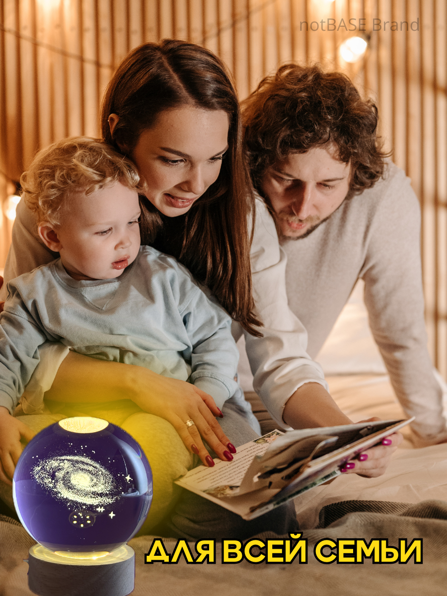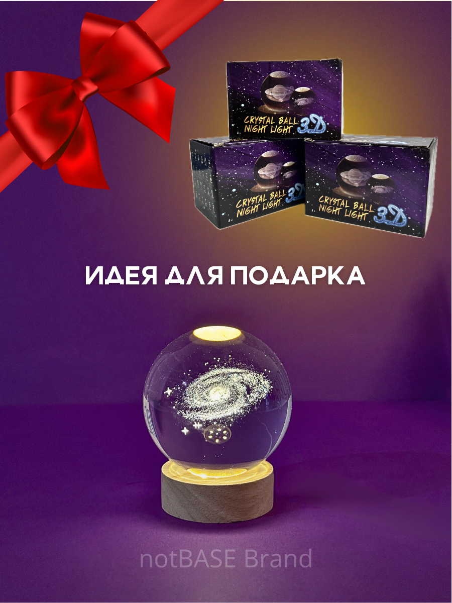 Светильник - ночник детский 3D "Галактика" космос стеклянный шар 8см интересное:
