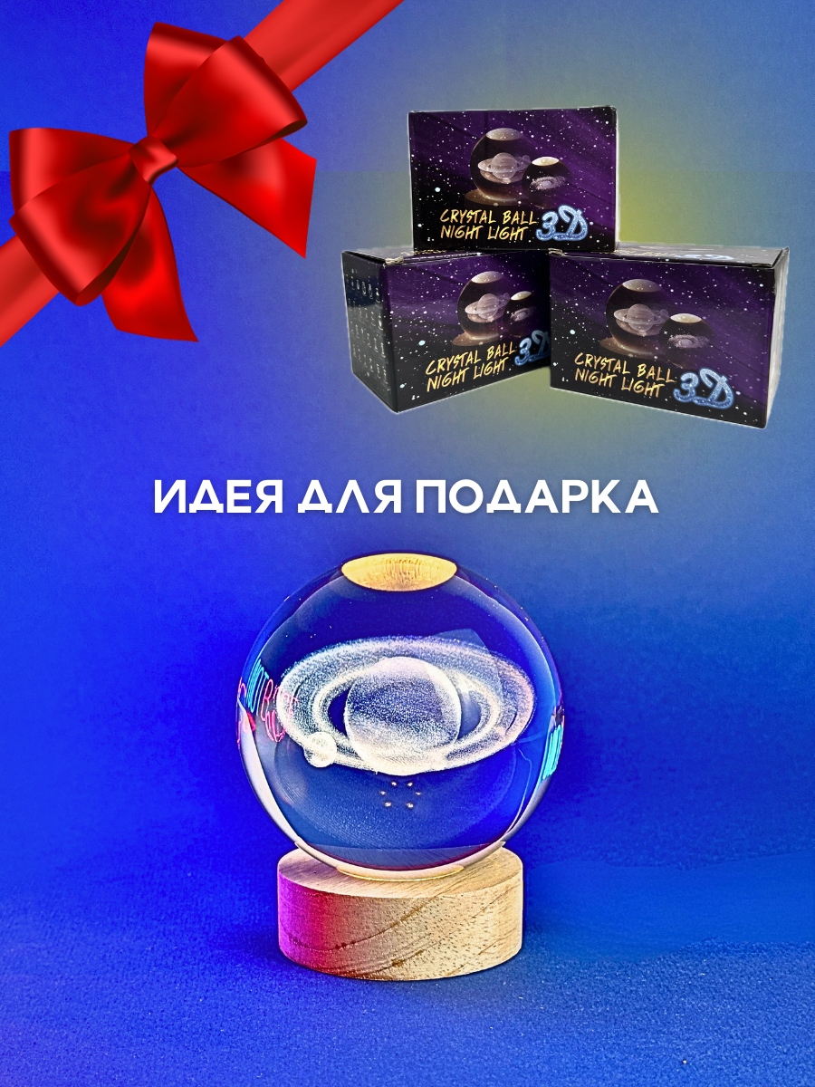 Светильник - ночник детский 3D "Сатурн" космос стеклянный шар 8см интересное: