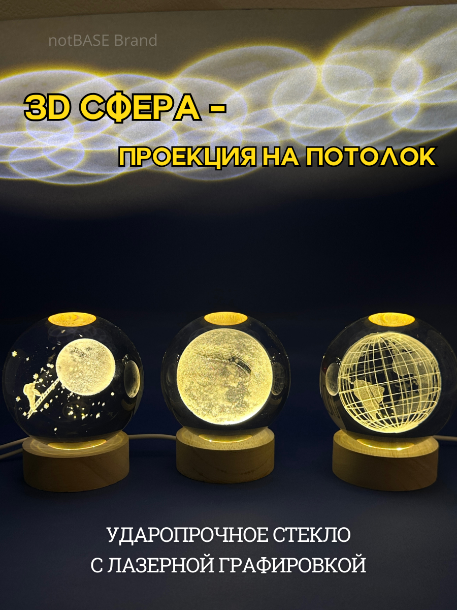 Светильник - ночник детский 3D "Луна" космос стеклянный шар 8см