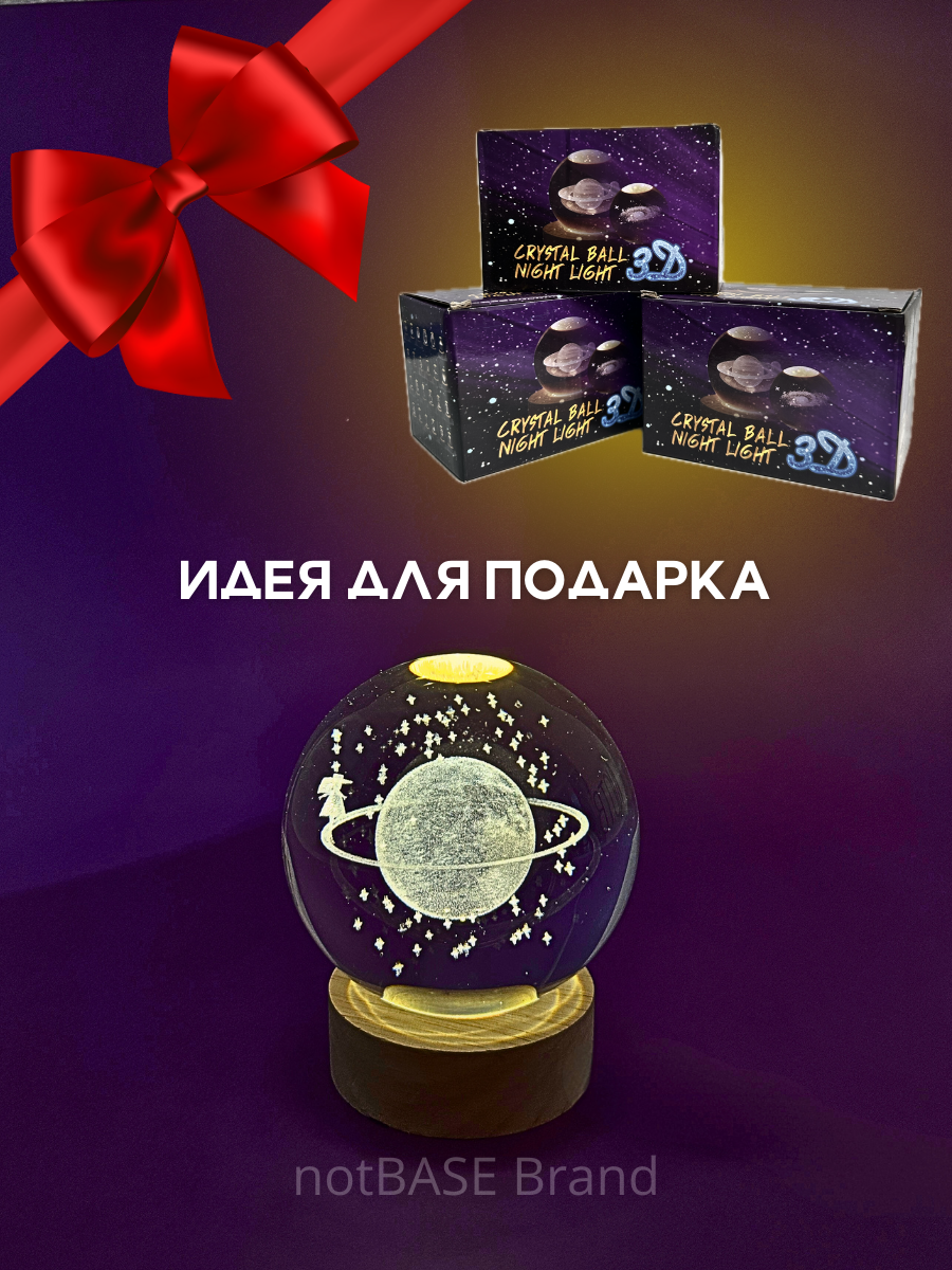 Светильник - ночник детский 3D "Сатурн" космос стеклянный шар 8см