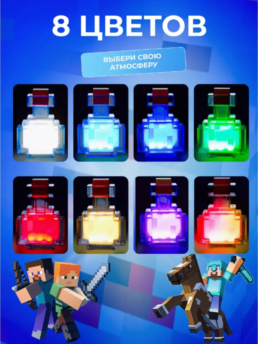 Детский ночник светильник майнкрафт колба зелье интересное: