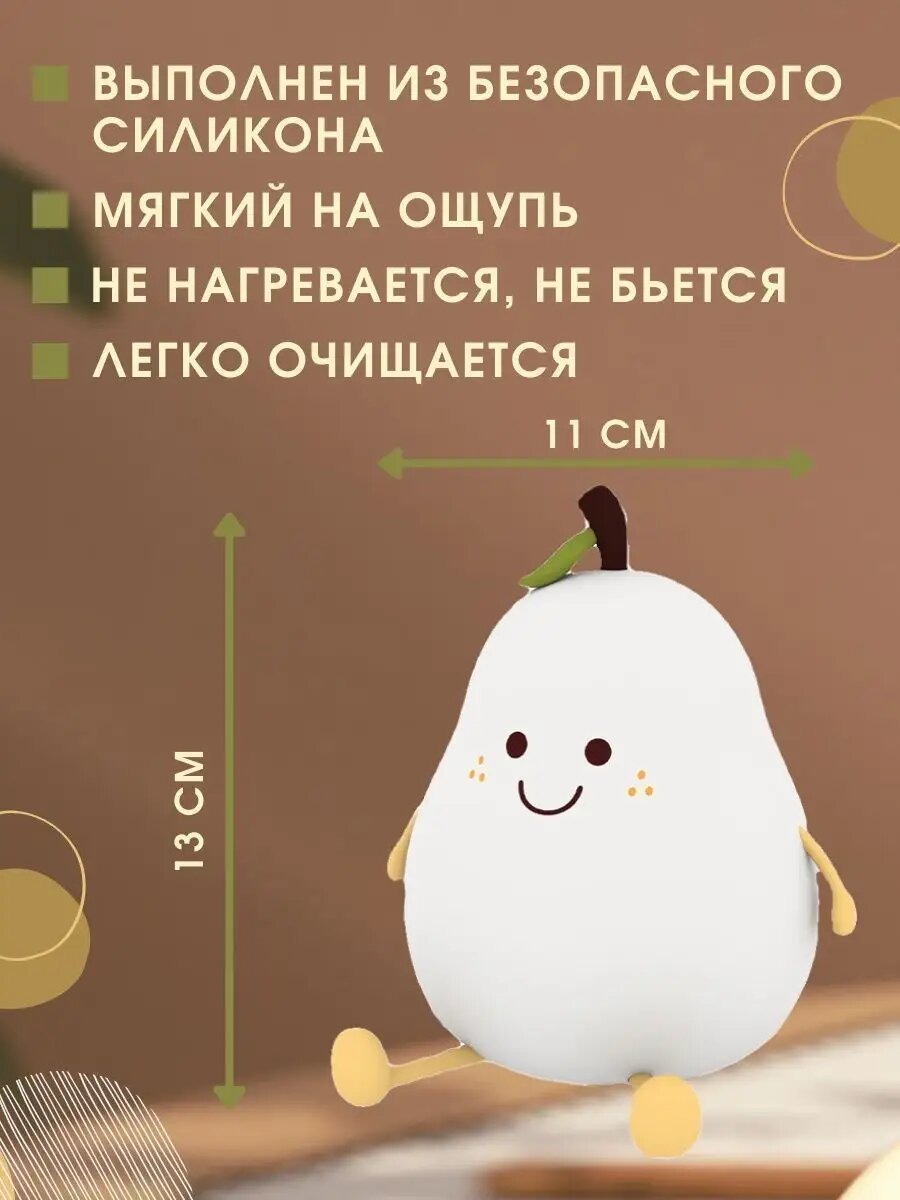 Ночник Груша, силиконовый, LED, для детей, беспроводной, гипоаллергенный интересное: