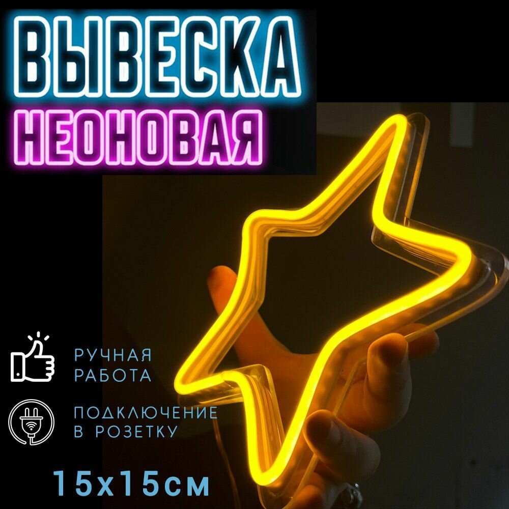 Неоновая вывеска Звезда / Светильник декоративный, 17 х 17 см. интересное: