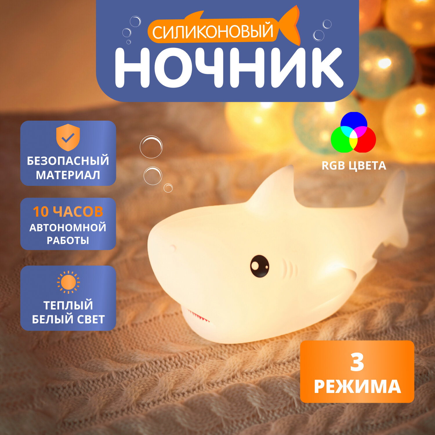 Светильник-ночник Neon-night светодиодный LED Акула силиконовый USB интересное: