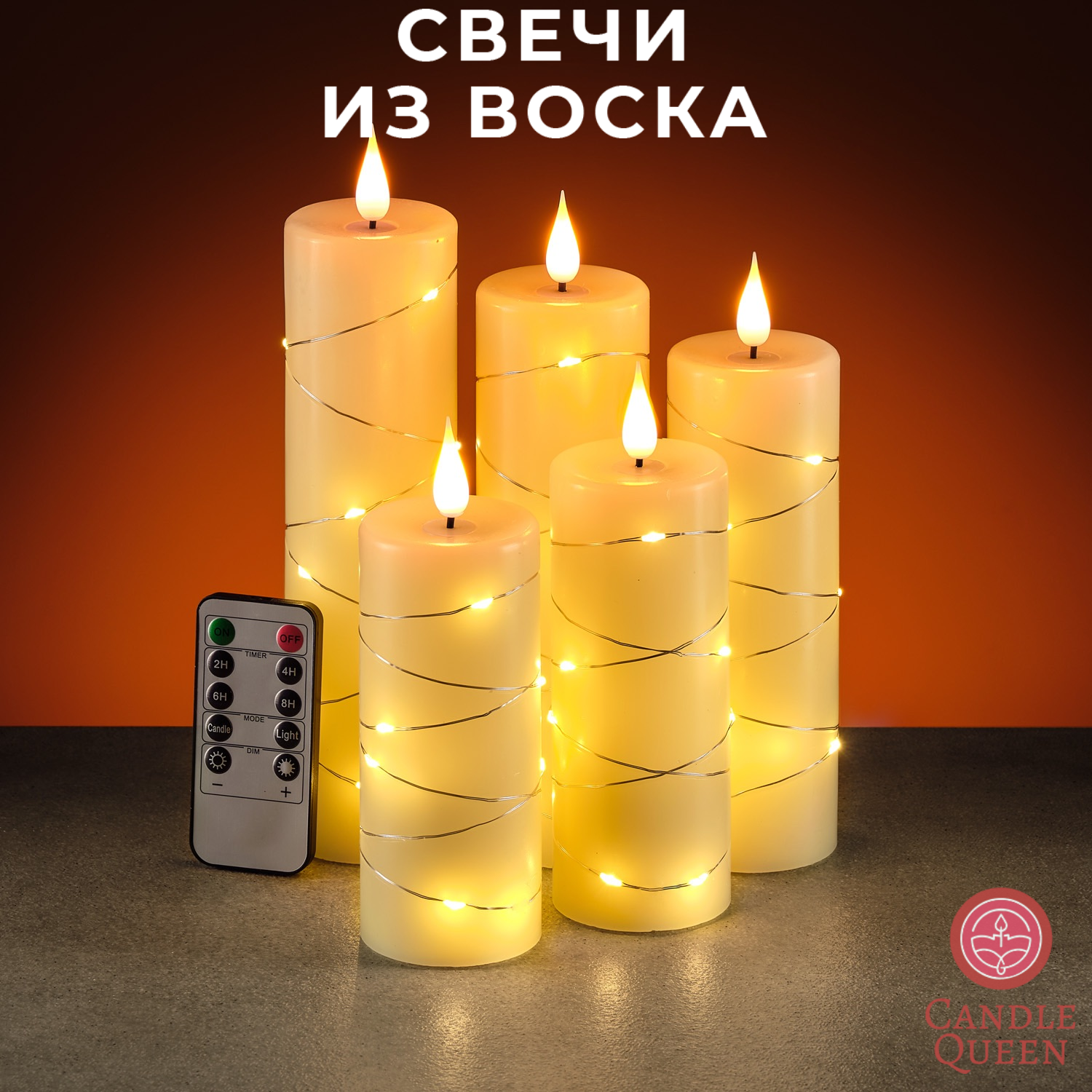 Комплект из 5 светодиодных восковых LED свечей с пультом управления на батарейках R5S19MT022