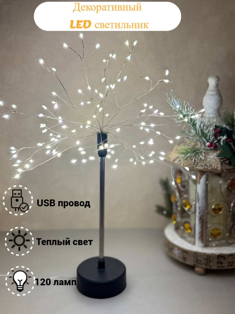 Ночник-светильник "Деревце", 120 лампочек, тёплый свет, 45 см интересное: