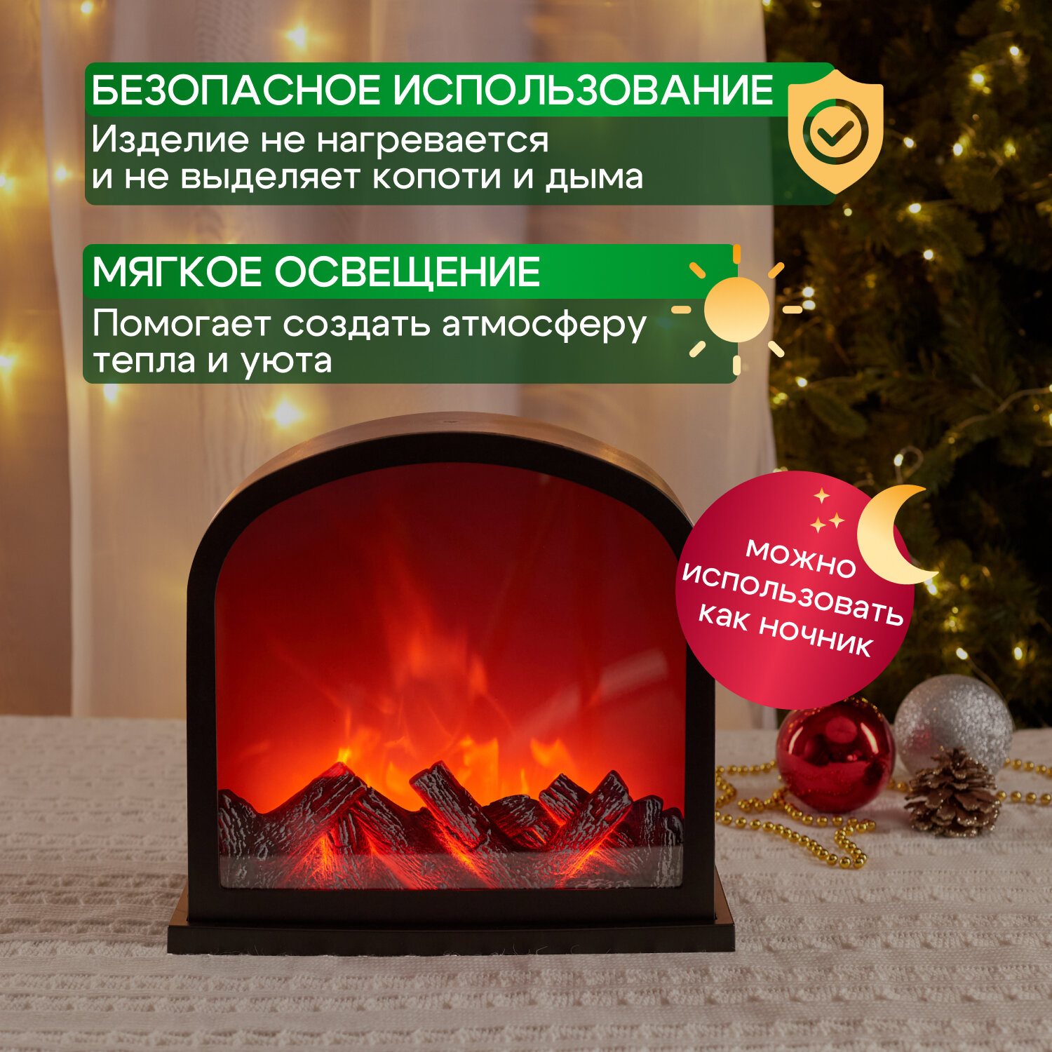 Декоративный фонарь ночник Камин Neon-Night с эффектом живого огня, 26 см