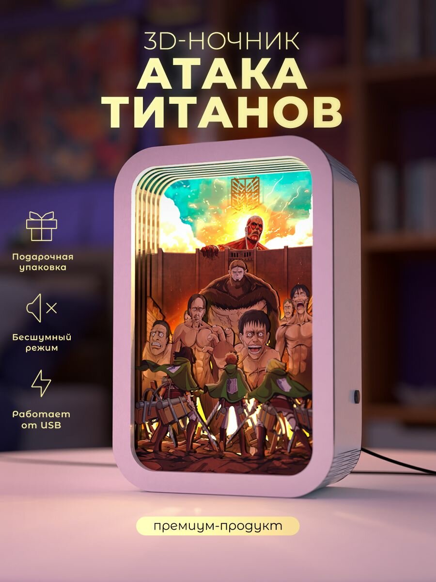 3D ночник картина Атака Титанов / настольный 3Д светильник от VozWooden интересное: