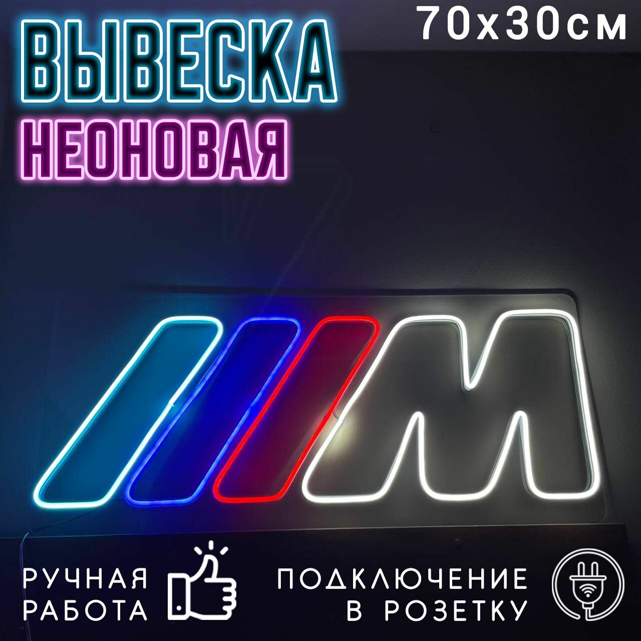 Неоновая вывеска BMW M Competition / Светильник декоративный, 70 х 30 см. интересное: