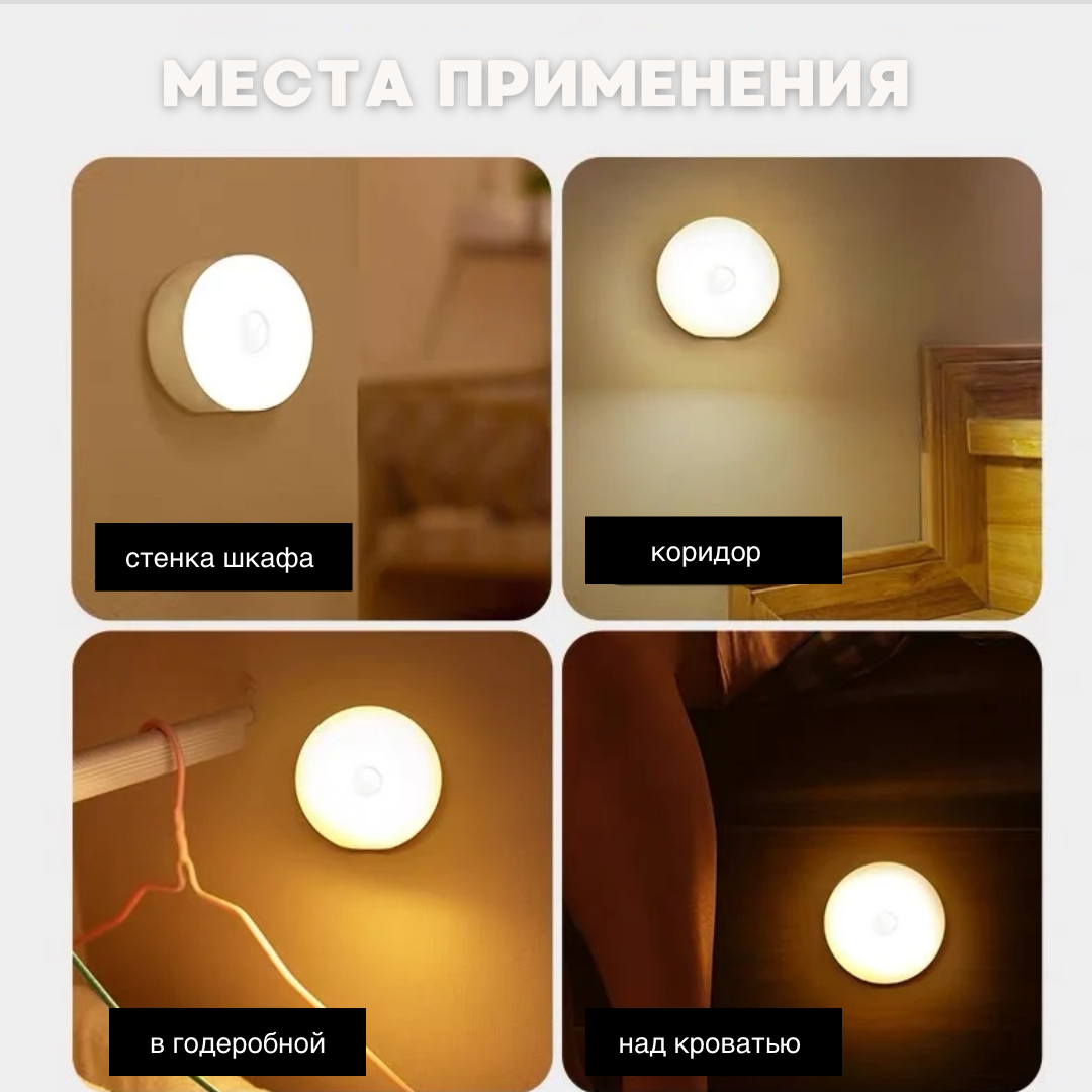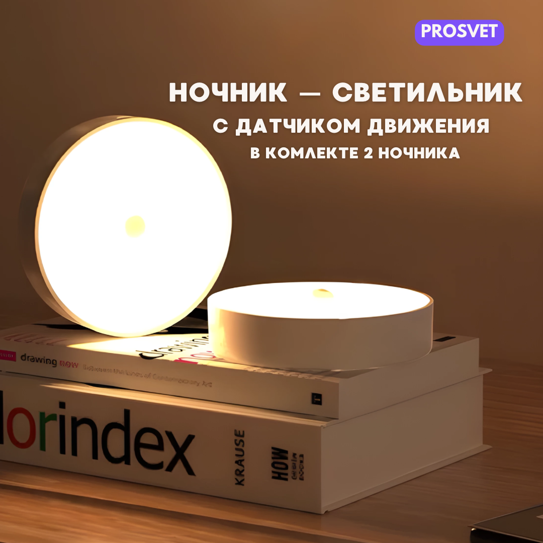 Светильник с датчиком движения, беспроводной перезаряжаемый USB-ночник, 2 шт интересное: