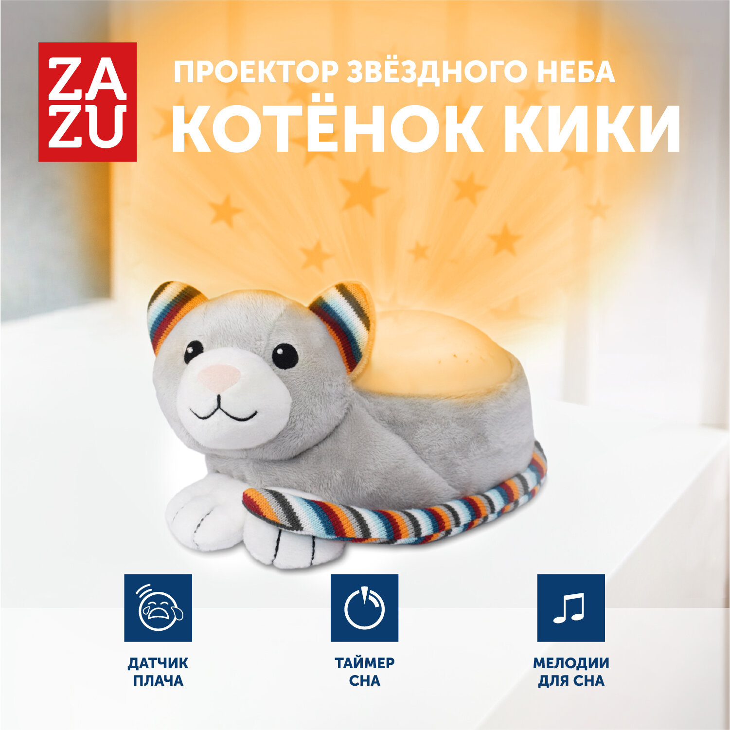Музыкальная мягкая игрушка проектор ZAZU Котёнок Кики для малышей интересное:
