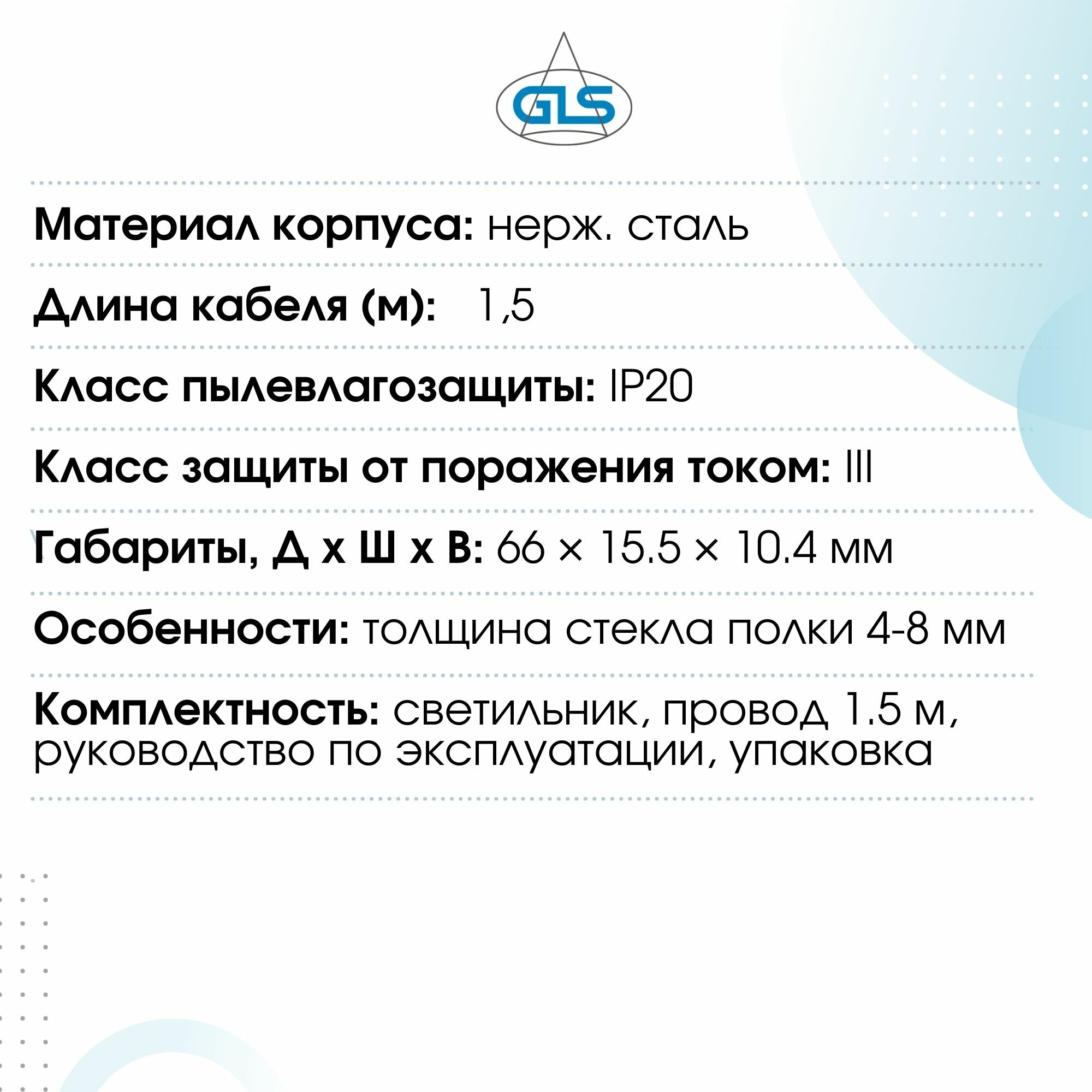 Светодиодный светильник-клипса 12V для торцевой подсветки стеклянных полок, цвет хром интересное: