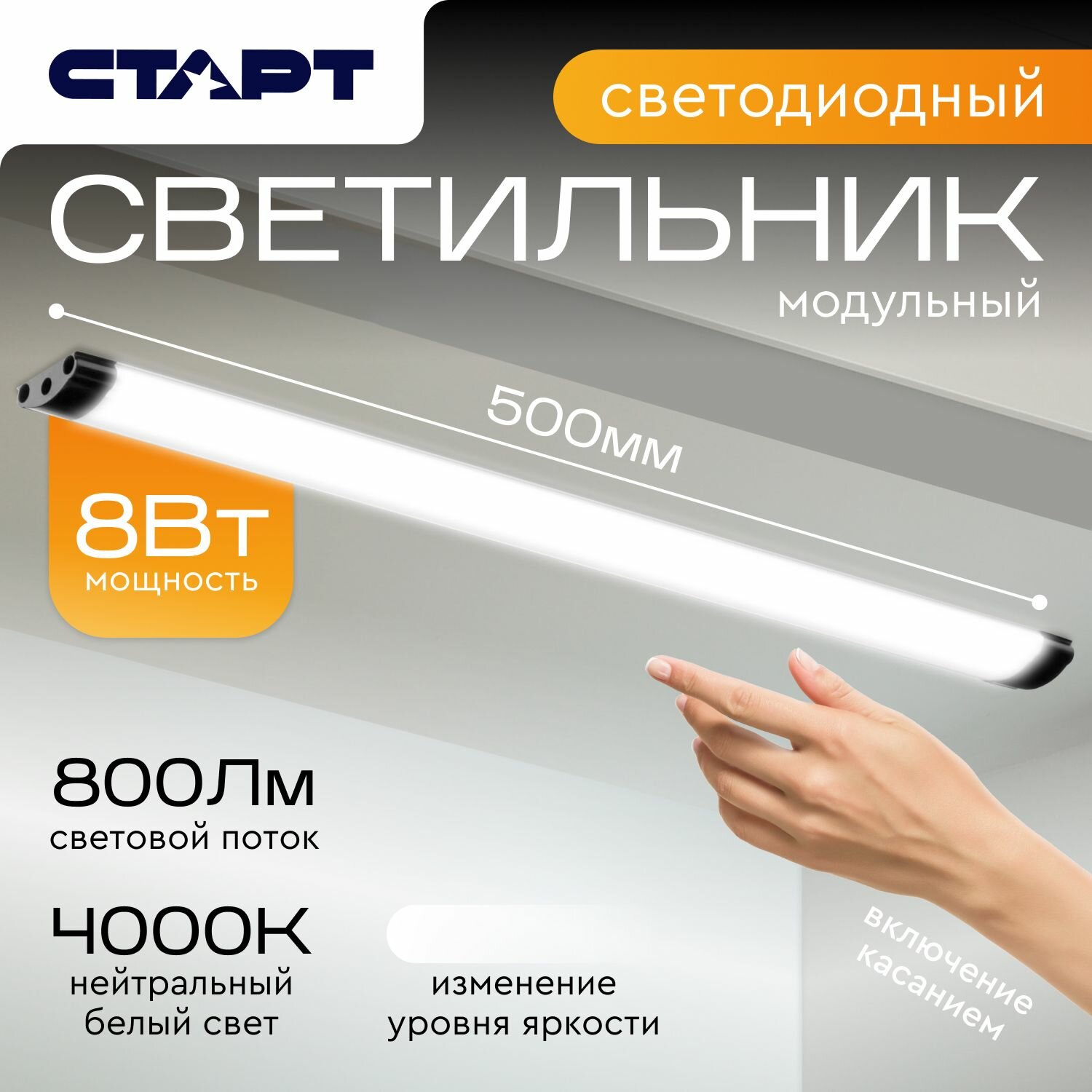 Светильник светодиодный линейный модульный старт сенсорный выключатель с регулировкой яркости, 8Вт, 4000К, 50см интересное:
