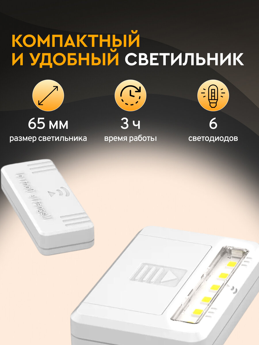 Купить Подсветка для шкафа или ящика с магнитным датчиком на батарейках, 2 штуки