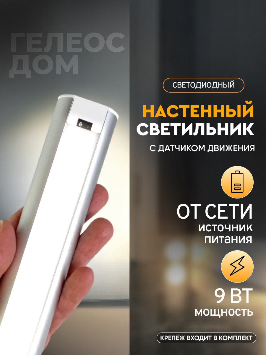 Светодиодный светильник 60см ГЕЛЕОС P61, 9Вт, hand wave sensor, для детской, кухни, гаража интересное:
