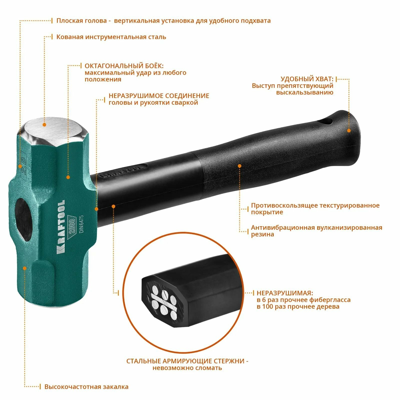 KRAFTOOL Кувалда STEEL FORCE 2 кг c армированной рукояткой, KRAFTOOL 2009-2