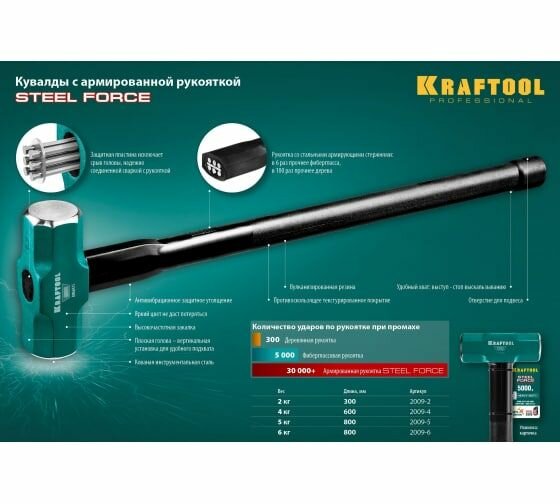 KRAFTOOL Кувалда STEEL FORCE 2 кг c армированной рукояткой, KRAFTOOL 2009-2