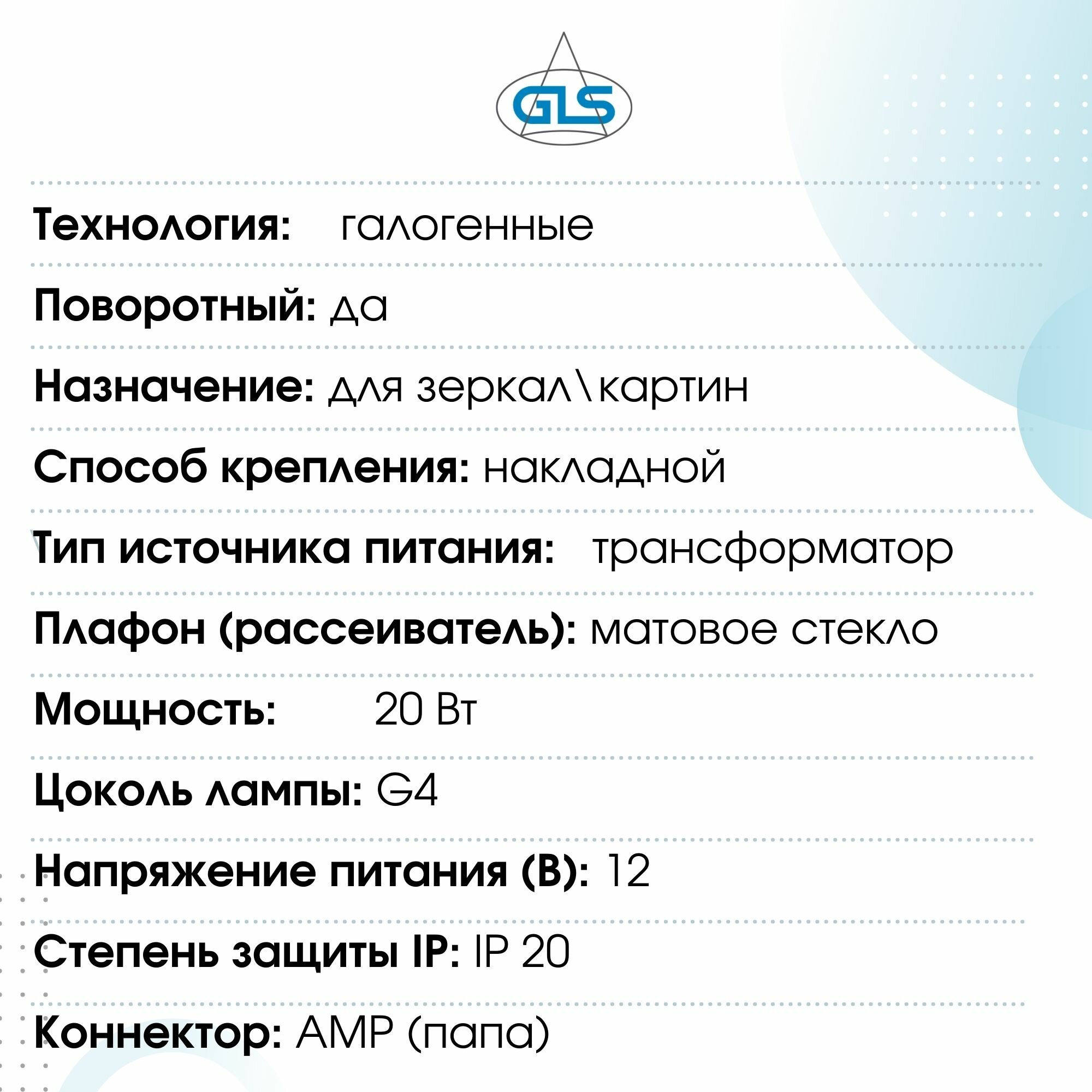 Светильник галогенный 6506 для зеркал, корпусной мебели, ванных комнат, кухонь, спален, 20 Вт, хром интересное: