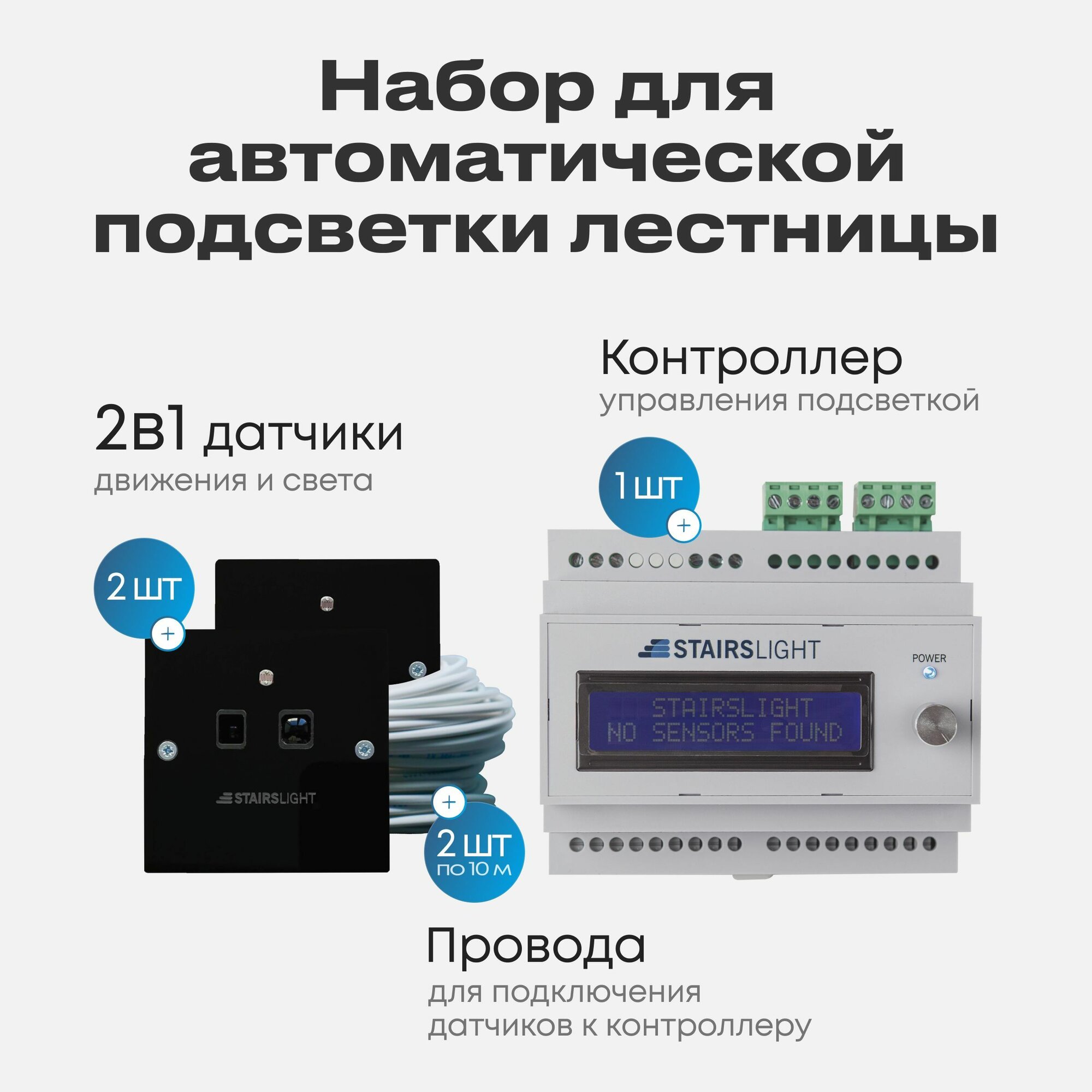 Подсветка для лестницы базовый комплект до 18 ступеней с датчиками движения, белый цвет