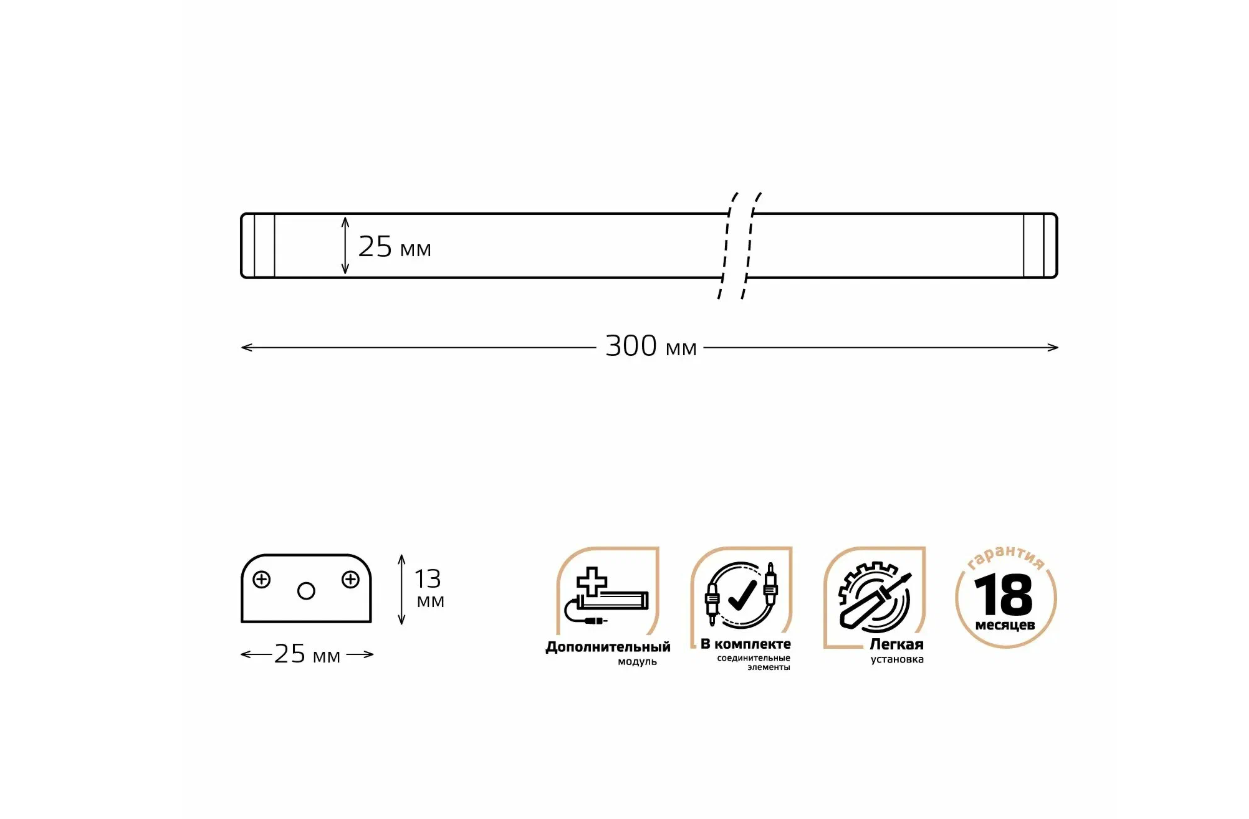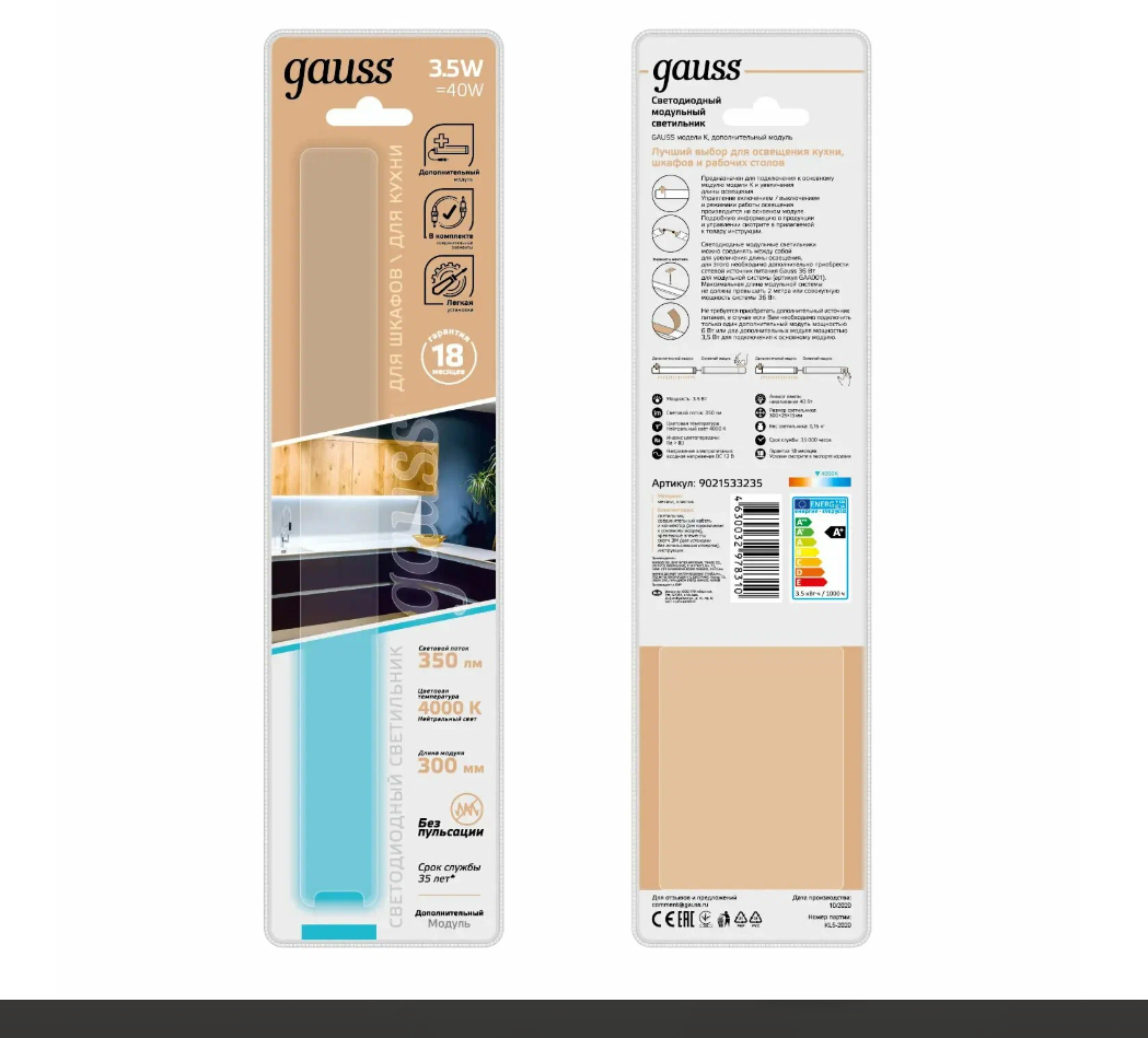 Модульный светильник дополнительный Gauss модель K 3,5W 350lm 4000K 12V 300mm ADD 1/10/40 интересное: