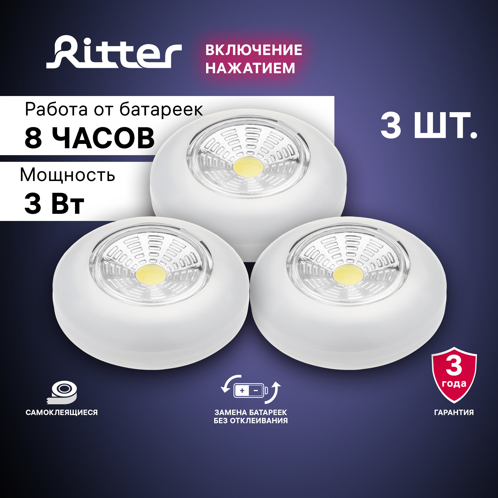 Фонарь-подсветка светодиодный Pushlight COB 3 Вт, набор 3 штуки, цвет белый 29098 8 Ritter интересное: