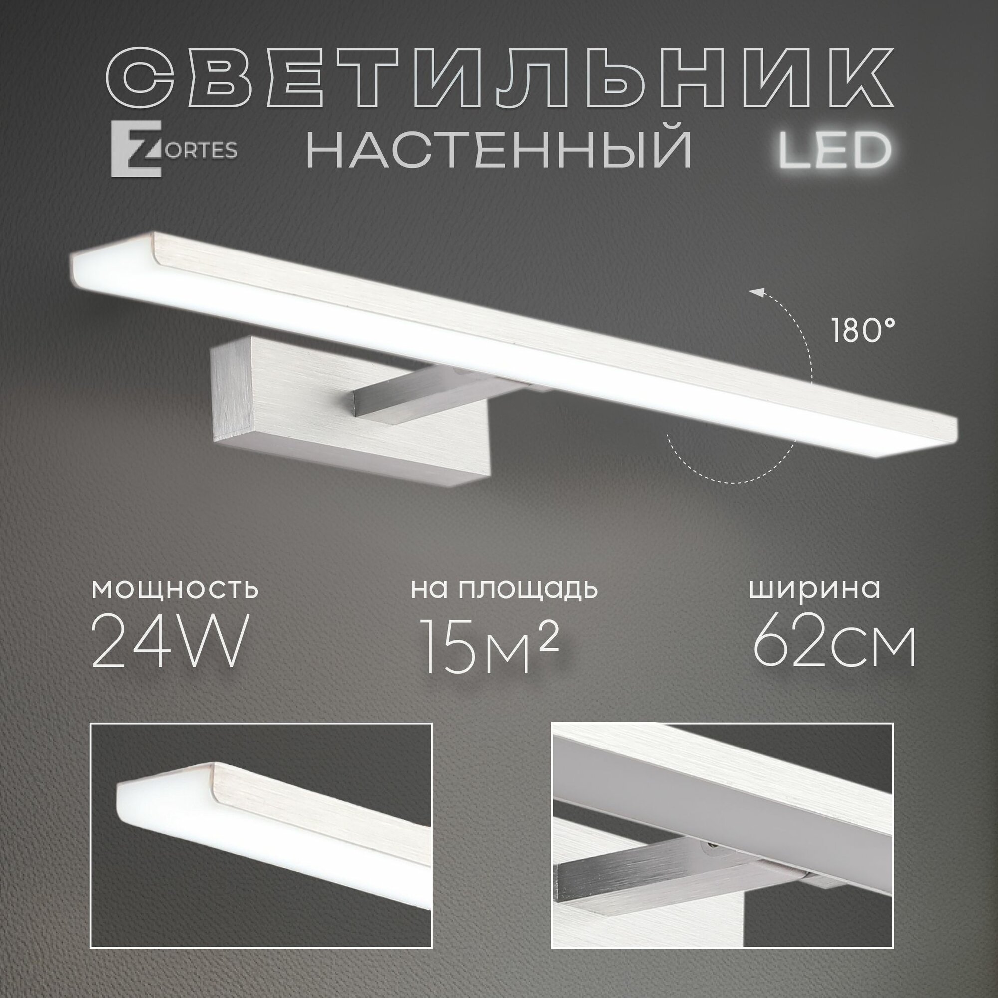 Настенный светильник Zortes RAY, Мощность- 24Вт, Тип лампы -Встроенный LED, Цвет - Серебро, Длина 610mm интересное: