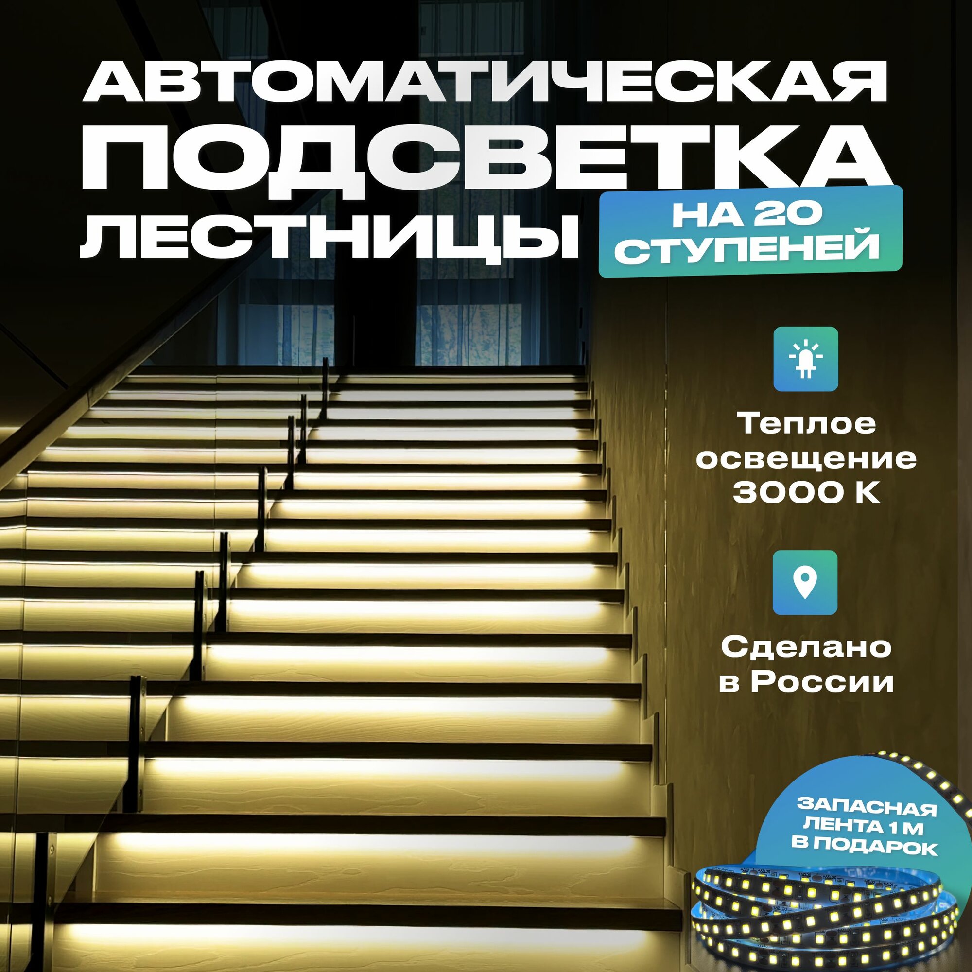Купить Подсветка для лестницы с датчиком движения 20 ступеней, теплый свет