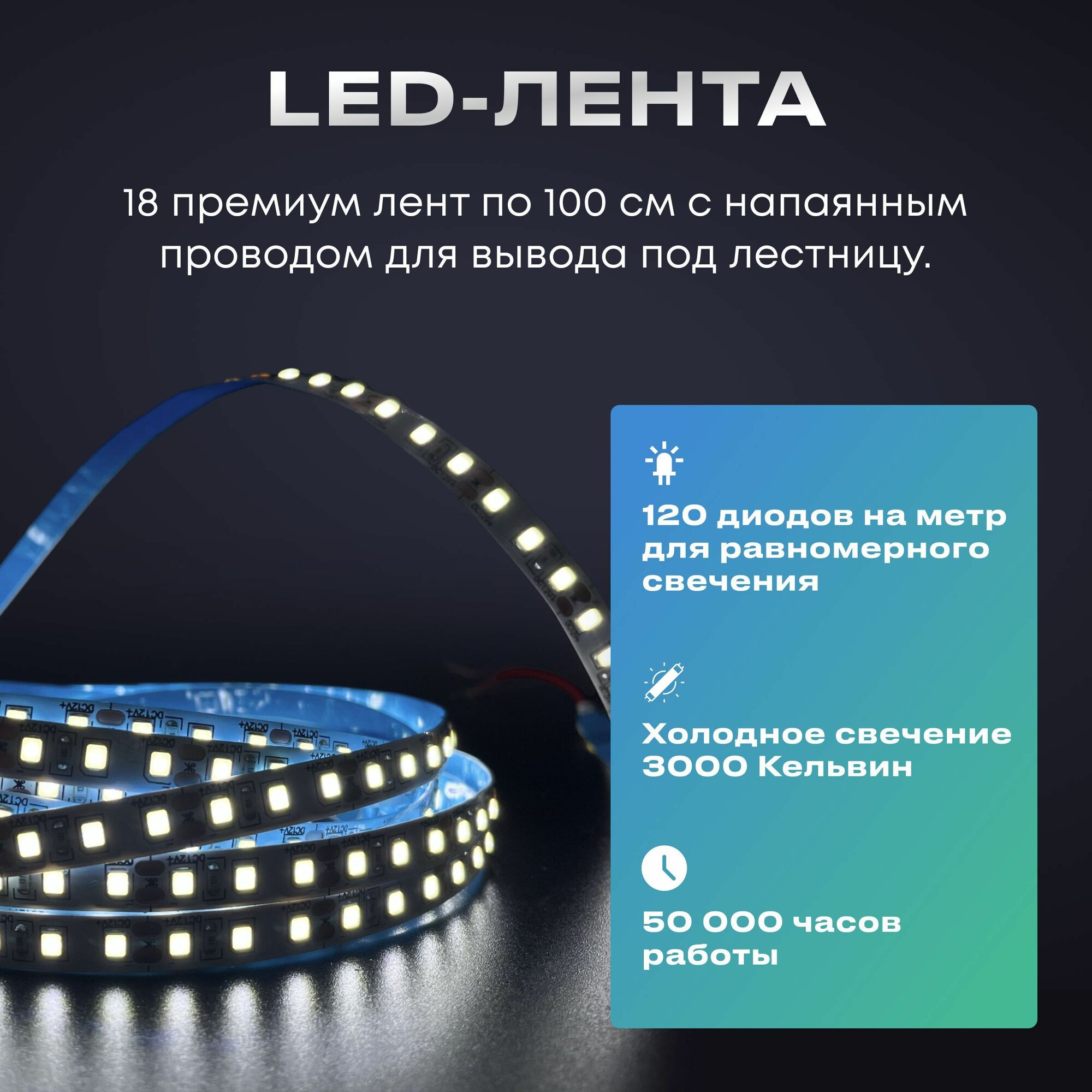 Подсветка для лестницы с датчиком движения 17 ступеней, холодный свет