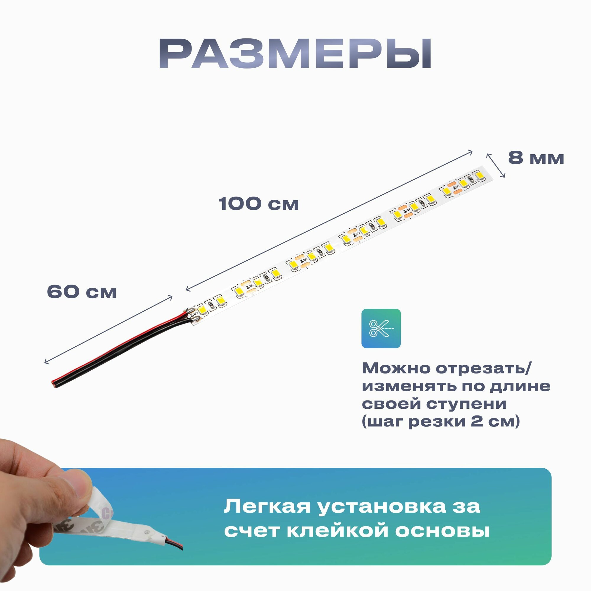 Подсветка для лестницы с датчиком движения 20 ступеней, холодный свет