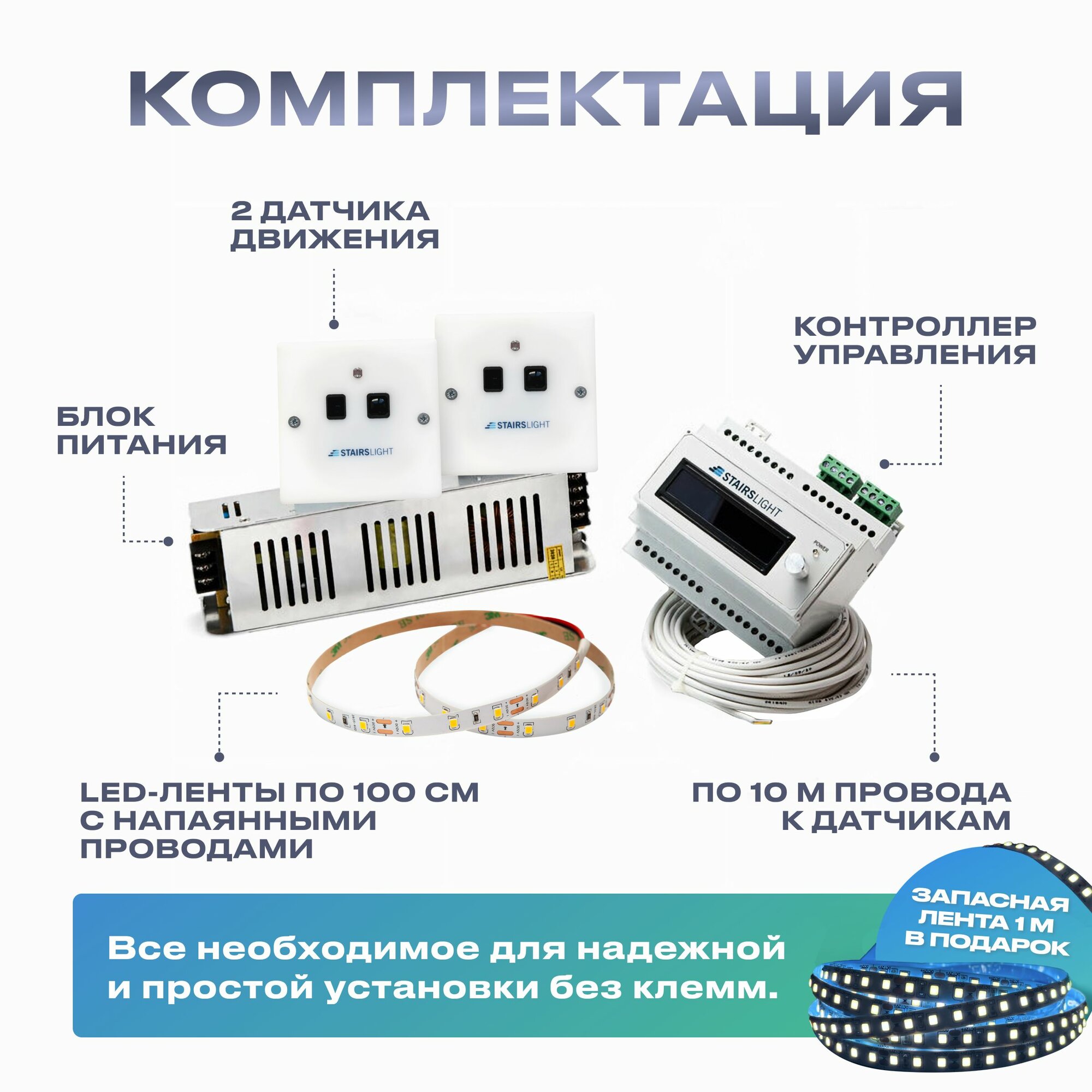 Подсветка для лестницы с датчиком движения 17 ступеней, холодный свет