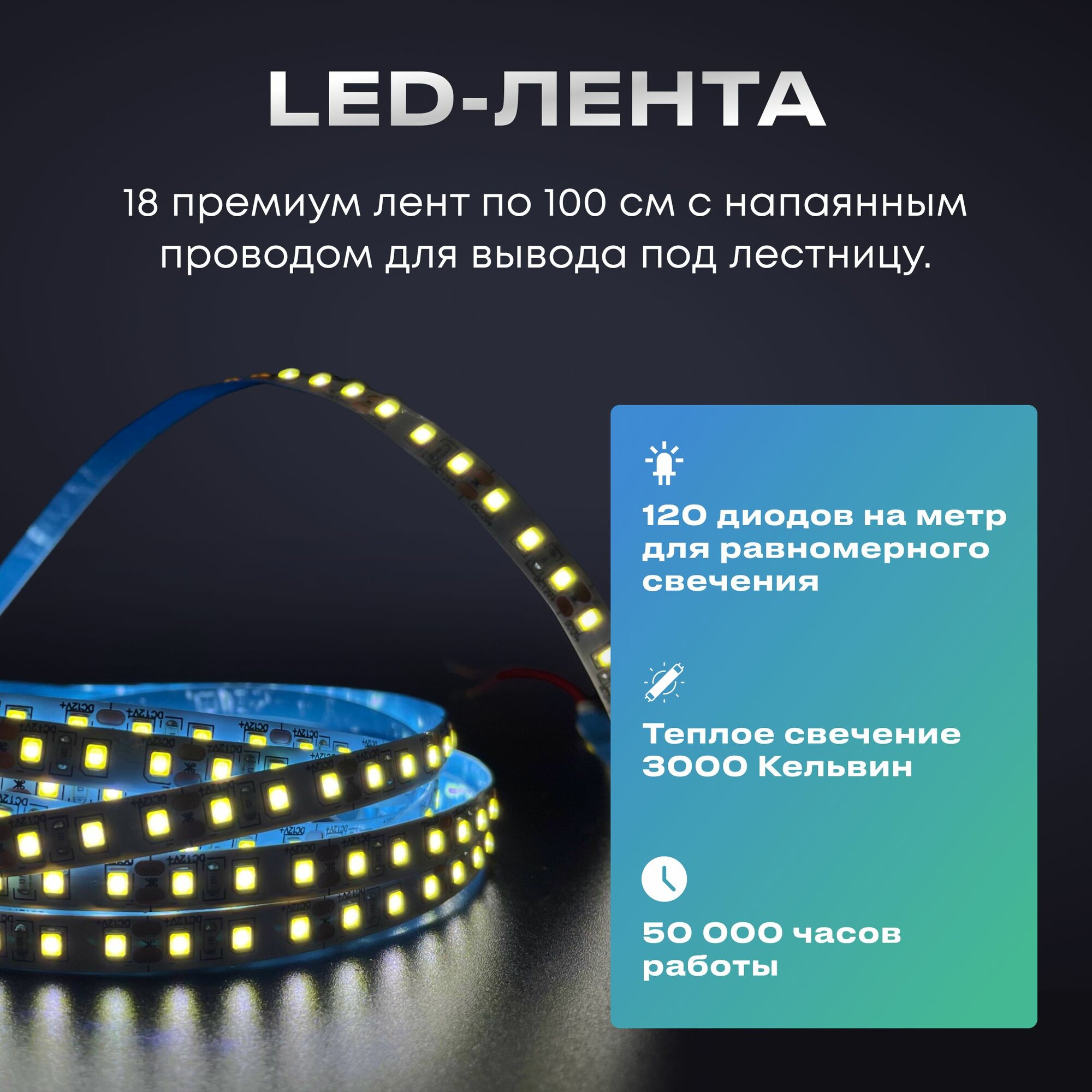 Подсветка для лестницы с датчиком движения 17 ступеней, теплый свет