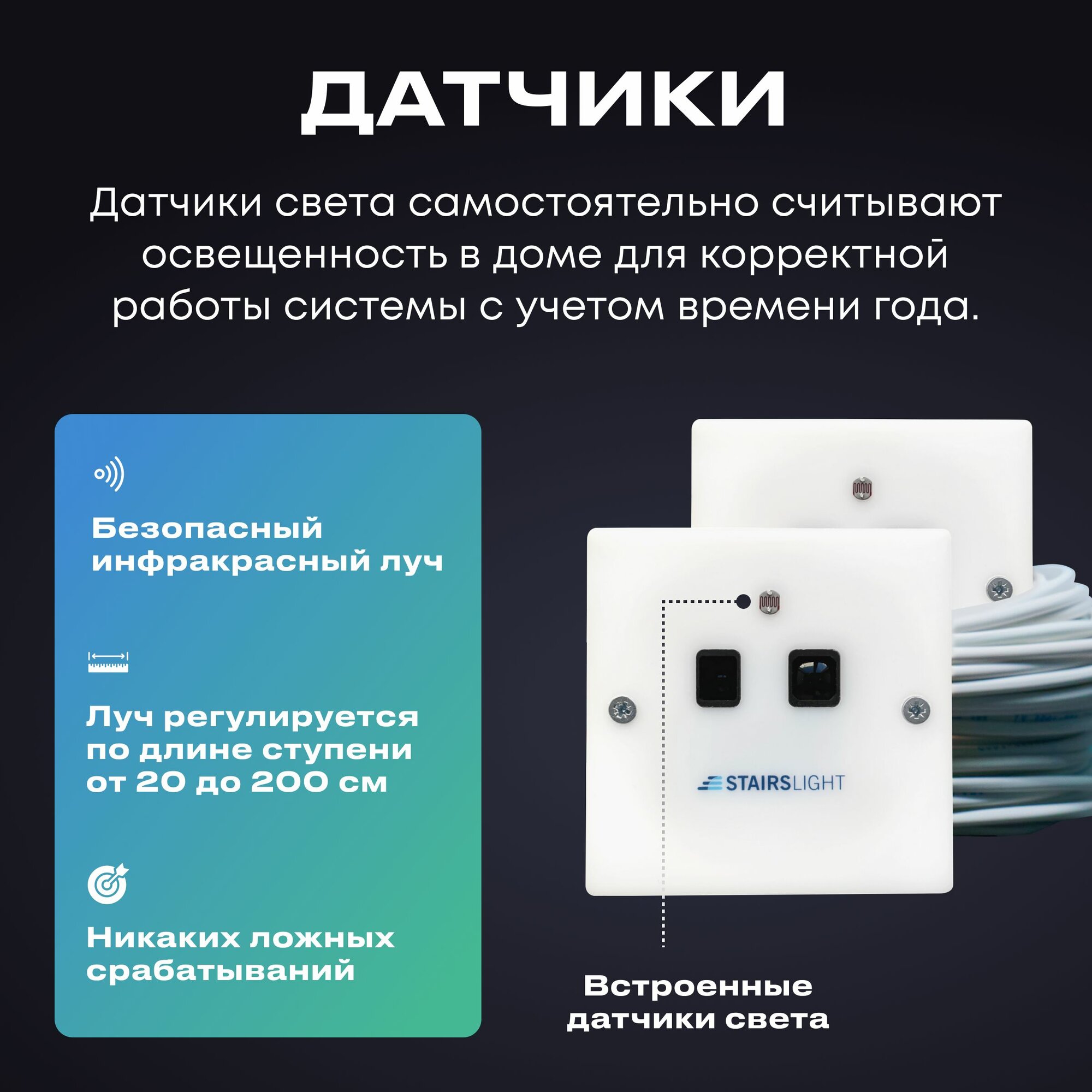 Подсветка для лестницы с датчиком движения 17 ступеней, холодный свет